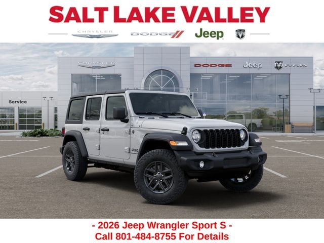 Adventure starts with the new Jeep Wrangler available now at Salt Lake Valley CDJR in Salt Lake City! Built for Utahâs canyons, trails, and highways alike, Jeep delivers freedom and capability in every mile. Discover why Wrangler drivers love to explore with confidence. Contact us at 801-484-8755 to schedule a time to see it today! 2026 Jeep Wrangler Sport S Bright White Clearcoat 2.0L I4 DOHC
