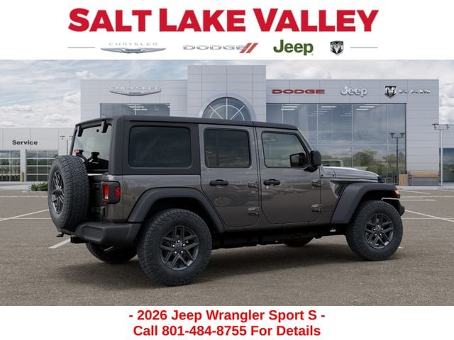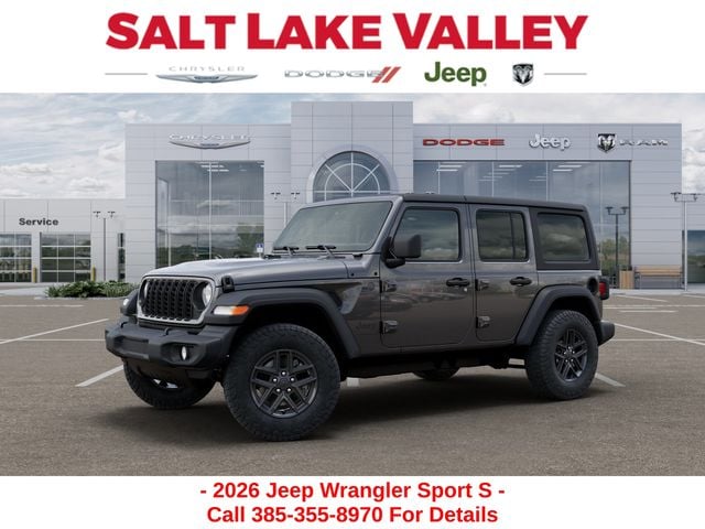 Adventure starts with the new Jeep Wrangler available now at Salt Lake Valley CDJR in Salt Lake City! Built for Utahâs canyons, trails, and highways alike, Jeep delivers freedom and capability in every mile. Discover why Wrangler drivers love to explore with confidence. Contact us at 801-484-8755 to schedule a time to see it today! 2026 Jeep Wrangler Sport S Granite Crystal Metallic Clearcoat 3.6L V6 24V VVT