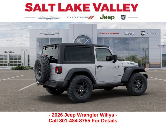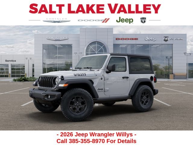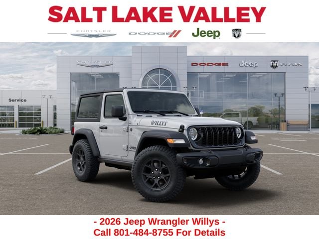 Adventure starts with the new Jeep Wrangler available now at Salt Lake Valley CDJR in Salt Lake City! Built for Utahâs canyons, trails, and highways alike, Jeep delivers freedom and capability in every mile. Discover why Wrangler drivers love to explore with confidence. Contact us at 801-484-8755 to schedule a time to see it today! 2026 Jeep Wrangler Willys bright white clearcoat 2.0L I4 DOHC