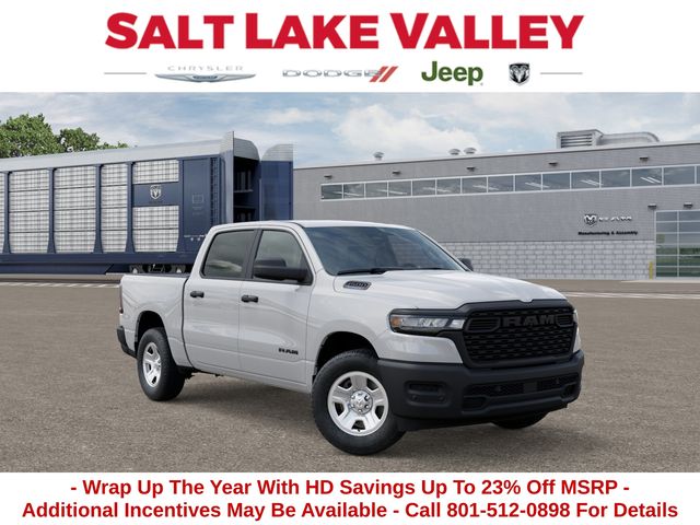 Get the job done and have fun doing it with the new Ram 1500 from Salt Lake Valley CDJR! Power, durability, and innovation come together in every Ram truck. Whether youâre working hard or exploring Utahâs backroads, the 1500 is built to handle it all. Call us today at 801-484-8755 to schedule a time to check it out! 2026 Ram 1500 Tradesman Bright White Clearcoat 3.6L V6 24V VVT