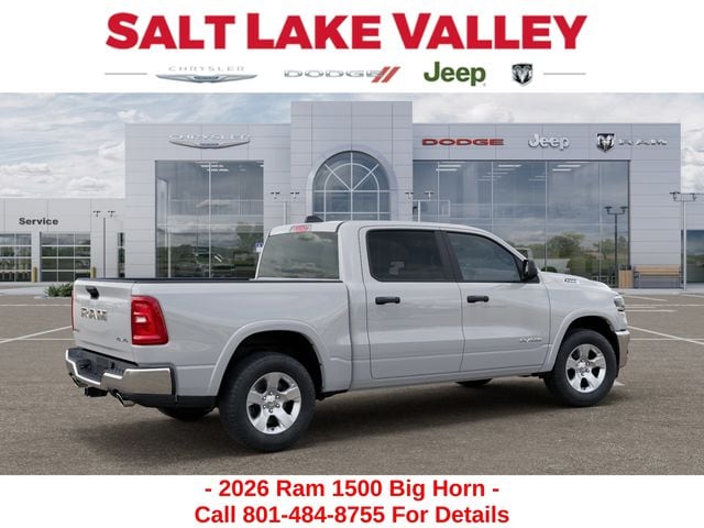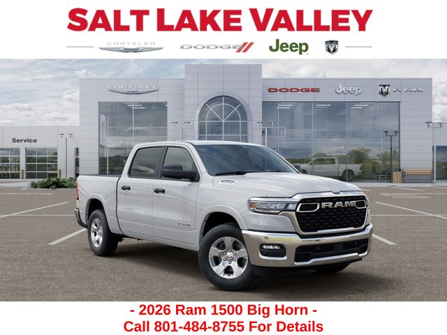 Get the job done and have fun doing it with the new Ram 1500 from Salt Lake Valley CDJR! Power, durability, and innovation come together in every Ram truck. Whether youâre working hard or exploring Utahâs backroads, the 1500 is built to handle it all. Call us today at 801-484-8755 to schedule a time to check it out! 2026 Ram 1500 Big Horn/Lone Star Bright White Clearcoat 3.0L I6