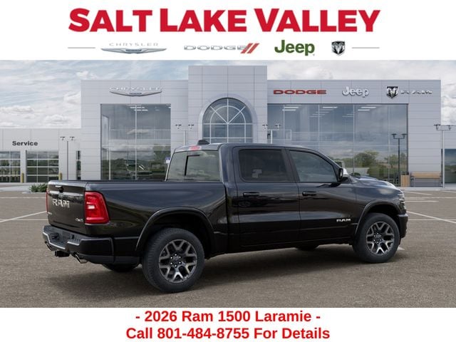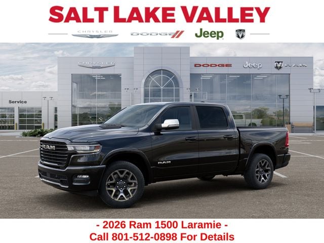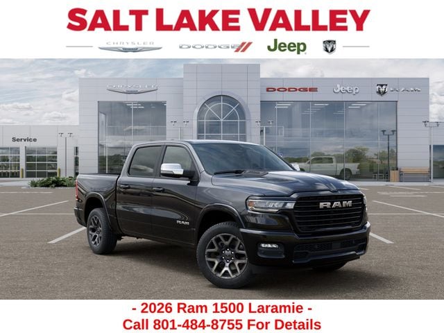 Get the job done and have fun doing it with the new Ram 1500 from Salt Lake Valley CDJR! Power, durability, and innovation come together in every Ram truck. Whether youâre working hard or exploring Utahâs backroads, the 1500 is built to handle it all. Call us today at 801-484-8755 to schedule a time to check it out! 2026 Ram 1500 Laramie Diamond Black Crystal Pearlcoat 3.0L I6