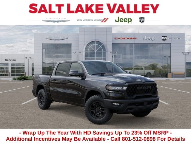 Get the job done and have fun doing it with the new Ram 1500 from Salt Lake Valley CDJR! Power, durability, and innovation come together in every Ram truck. Whether youâre working hard or exploring Utahâs backroads, the 1500 is built to handle it all. Call us today at 801-484-8755 to schedule a time to check it out! 2026 Ram 1500 Rebel Diamond Black Crystal Pearlcoat 3.0L I6