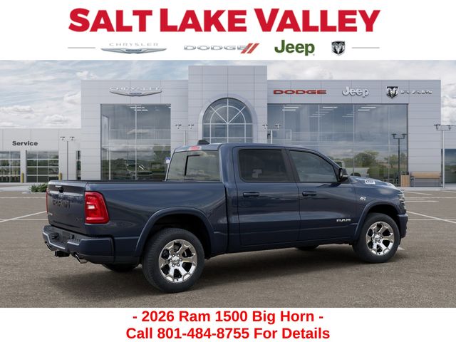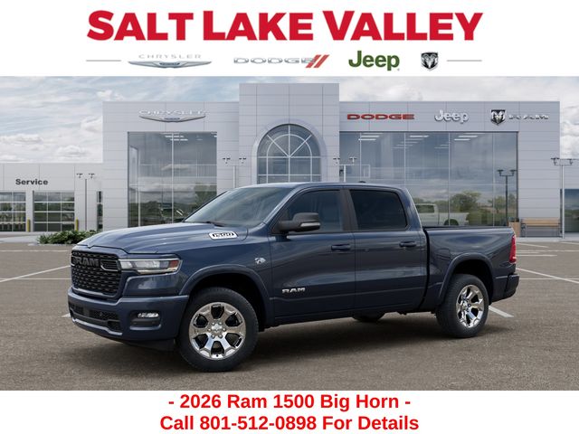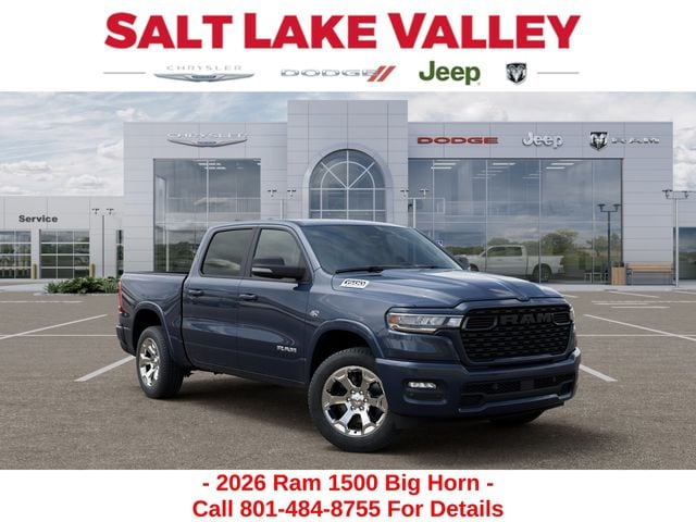 Get the job done and have fun doing it with the new Ram 1500 from Salt Lake Valley CDJR! Power, durability, and innovation come together in every Ram truck. Whether youâre working hard or exploring Utahâs backroads, the 1500 is built to handle it all. Call us today at 801-484-8755 to schedule a time to check it out! 2026 Ram 1500 Big Horn/Lone Star Forged Blue Metallic HEMI 5.7L V8 Multi Displacement VVT eTorque