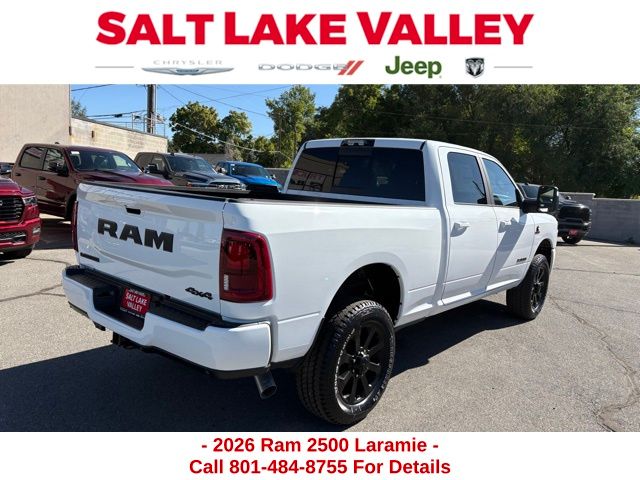 Get the job done and have fun doing it with the new Ram 2500 from Salt Lake Valley CDJR! Power, durability, and innovation come together in every Ram truck. Whether youâre working hard or exploring Utahâs backroads, the 2500 is built to handle it all. Call us today at 801-484-8755 to schedule a time to check it out! 2026 Ram 2500 Laramie Bright White Clearcoat 6.7L I6