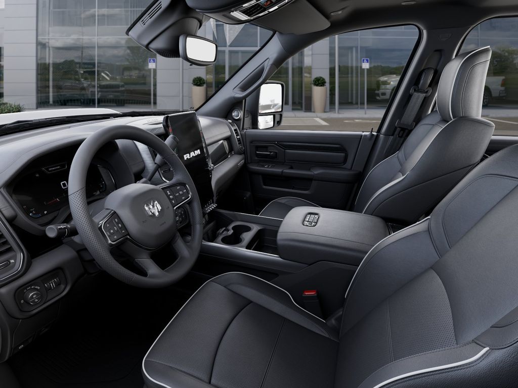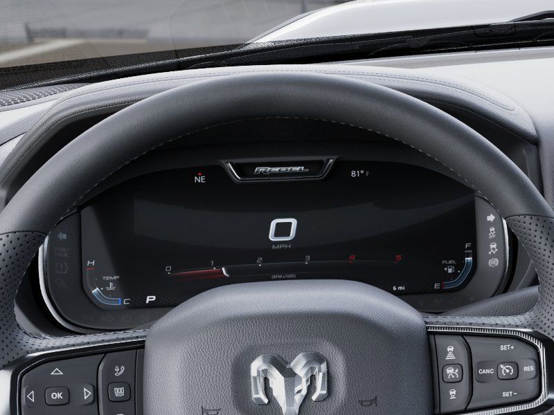Quick Order Package 24R Rebel, Rebel Level 2 Equipment Group (115V Auxiliary Rear Power Outlet, 14.4" Touchscreen Display, 17 Speaker Harman/Kardon Premium Sound, 2 Way Rear Headrest Seat, 4 Way Front Headrests, 4G LTE Wi-Fi Hot Spot, Alexa Built-in, Aluminum Litho Instrument Panel Bezels with Black Trim, Apple CarPlay, Auto Adjust in Reverse Exterior Mirrors, Auto Dim Exterior Mirror, Auto High Beam Headlamp Control, Auto Power-Folding Mirrors, Auto-Dimming Exterior Passenger Mirror, Black Exterior Mirrors, Body Color Door Handles, Bucket Seats, Center Stop Lamp with Cargo View Camera, Connected Travel and Traffic Services, Connectivity - US/Canada, Disassociated Touchscreen Display, Dual Wireless Charging Pad, Emergency Vehicle Alert System (EVAS), Exterior Mirrors Courtesy Lamps, Exterior Mirrors with Heating Element, Exterior Mirrors with Memory, Exterior Mirrors with Supplemental Signals, Folding Flat Load Floor Storage, For Details, Visit DriveUconnect.com, For More Info, Call 800-643-2112, Forward and Reverse Utility Lights, Front Door Locks 2-Door Passive Entry, Front Passenger Interactive Display, Front Seat Back Map Pockets, Full Length Upgraded Floor Console, Global Telematics Box Module, Google Android Auto, GPS Antenna Input, GPS Navigation, HD Radio, Heated Front Seats, Heated Second Row Seats, Heated Steering Wheel, High Back Seats, Integrated Voice Command with Bluetooth, Leather Trimmed Bucket Seats (NL), Leather Wrapped Grab Handle, Leather Wrapped Shift Control, LED Bed Lighting, LED Dome Lamp with on/Off Switch, LED Interior Lighting, Luxury Door Trim Panel, Media Hub with 2 Charge Only USBs, Mirror Running Lights, MOPAR Deployable Bed Step, MOPAR Front and Rear Rubber Floor Mats, MOPAR Spray in Bedliner, Off-Road Info Pages, Overhead LED Lamps, Power 2-Way Driver Lumbar Adjust, Power 2-Way Passenger Lumbar Adjust, Power Adjust 8-Way Driver Seat, Power Adjust 8-Way Front Passenger Seat, Power Adjust Mirrors, Power Adjustable Pedals with Memory, Power Deployable Running Boards, Power Heated Fold Telescopic Mirrors with Memory, Power Telescoping Mirrors, Power-Adjustable Convex Aux Mirrors, Premium Overhead Console, Radio: Uconnect 5 Nav with 14.4" Display, Radio/Driver Seat/Mirrors/Pedals Memory, Rain Sensitive Windshield Wipers, Rear 60/40 Folding Seat, Selectable Tire Fill Alert, SiriusXM Radio Service, SiriusXM with 360L, Sport Performance Hood, Sun Visors with Illuminated Vanity Mirrors, Trailer Tow Pages, Universal Garage Door Opener, and Ventilated Front Seats), 4-Wheel Disc Brakes, 5th Wheel/Gooseneck Towing Prep Group, 6 Speakers, ABS brakes, Adjustable pedals, Air Conditioning, Alloy wheels, AM/FM radio: SiriusXM with 360L, Apple CarPlay/Android Auto, Auto-dimming Rear-View mirror, Automatic temperature control, Black Wheel Center Hub, Block heater, Brake assist, Cloth Heated Power Bench Seat, Compass, Delay-off headlights, Driver door bin, Dual front impact airbags, Dual front side impact airbags, Electronic Stability Control, Front anti-roll bar, Front Center Armrest w/Storage, Front dual zone A/C, Front fog lights, Front License Plate Bracket, Front reading lights, Fully automatic headlights, Heated door mirrors, Heated front seats, Heated steering wheel, Illuminated entry, Leather steering wheel, Low tire pressure warning, Navigation System, Occupant sensing airbag, Outside temperature display, Overhead airbag, Overhead console, Panic alarm, ParkView Rear Back-Up Camera, Pa Price may include: $1000 - 2026 National Bonus Cash . Exp. 04/3