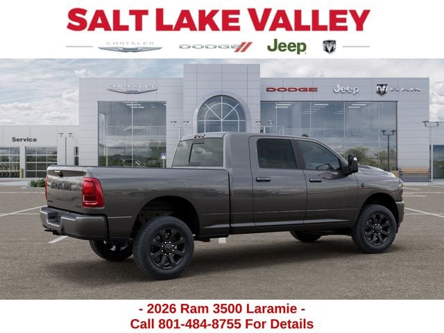 Get the job done and have fun doing it with the new Ram 3500 from Salt Lake Valley CDJR! Power, durability, and innovation come together in every Ram truck. Whether youâre working hard or exploring Utahâs backroads, the 3500 is built to handle it all. Call us today at 801-484-8755 to schedule a time to check it out! 2026 Ram 3500 Laramie Granite Crystal Metallic Clearcoat 6.7L I6