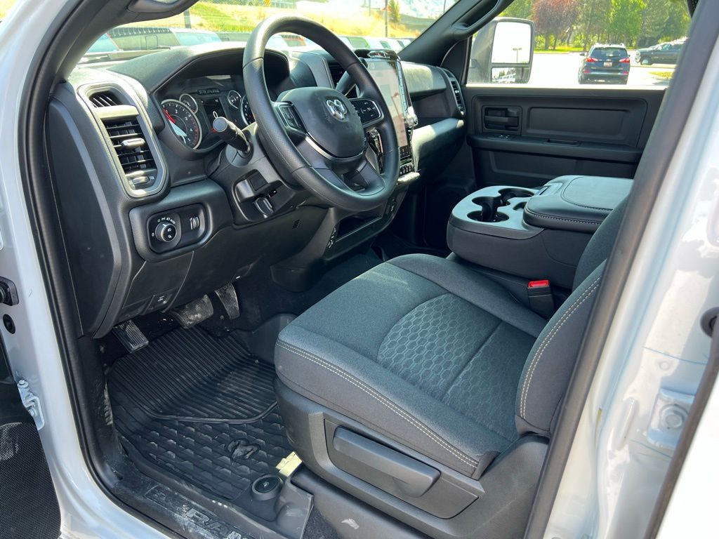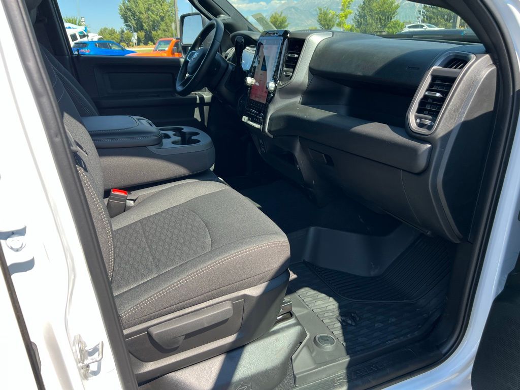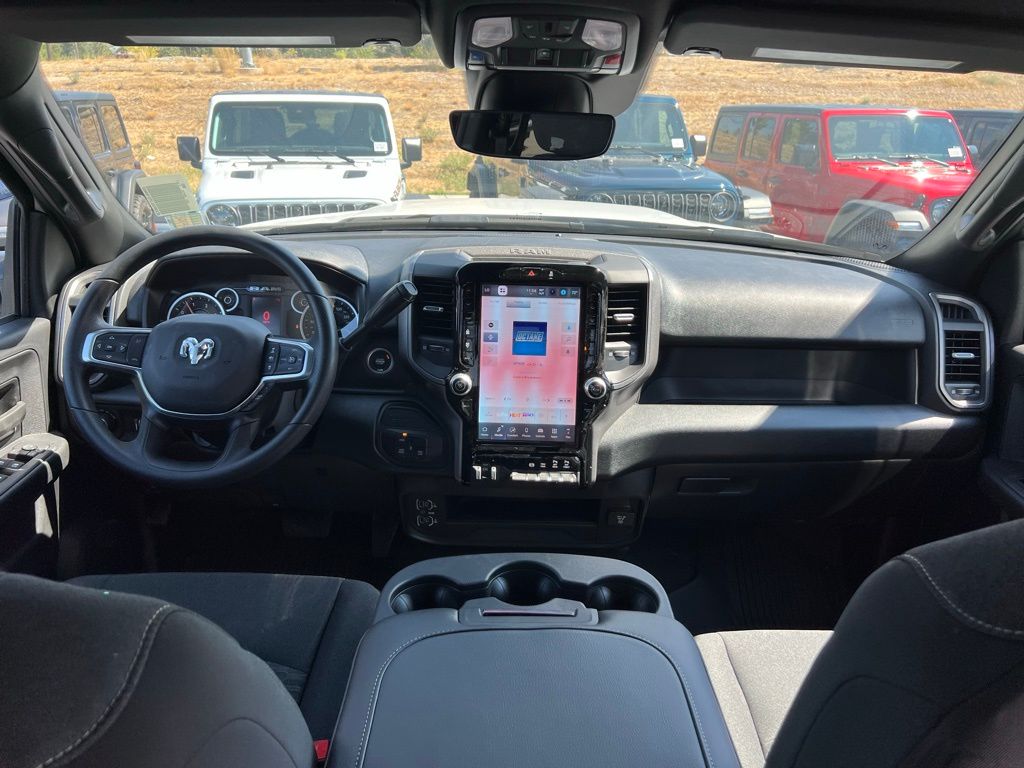 Quick Order Package 24A Tradesman, Tradesman Level 1 Equipment Group (115-Volt Auxiliary Front Power Outlet, 12" Touchscreen Display, 2 Way Rear Headrest Seat, 4 Way Front Headrests, 40/20/40 Split Bench Seat, 400W Inverter, 4G LTE Wi-Fi Hot Spot, Air Conditioning ATC with Dual Zone Control, Alexa Built-in, Apple CarPlay, Auto-Dimming Rear-View Mirror, Black Exterior Mirrors, Carpet Floor Covering, Cloth 40/20/40 Bench Seat, Connected Travel and Traffic Services, Connectivity - US/Canada, Convenience Group, Disassociated Touchscreen Display, Emergency Vehicle Alert System (EVAS), Exterior 115V AC Outlet, Exterior Mirrors Courtesy Lamps, Exterior Mirrors with Heating Element, Exterior Mirrors with Supplemental Signals, For Details Visit DriveUconnect.com, For More Info, Call 800-643-2112, Front and Rear Floor Mats, Front Armrest with Cupholders, Global Telematics Box Module, Google Android Auto, GPS Antenna Input, GPS Navigation, HD Radio, Integrated Voice Command with Bluetooth, Manual Adjust 4-Way Driver Seat, Manual Adjust 4-Way Front Passenger Seat, Manual Folding Exterior Mirrors, Manual Telescoping Mirrors, Mirror Running Lights, Mopar Black Tubular Side Steps, Off-Road Information Pages, ParkSense Front/Rear Park Assist System, Power Adjust Mirrors, Power Heat Fold Telescopic Mirrors, Power-Adjustable Convex Aux Mirrors, Radio: Uconnect 5 Navigation with 12.0" Display, Rear Folding Seat, Rear Power Sliding Window, Remote USB Port - Charge Only, Selectable Tire Fill Alert, SiriusXM Radio Service, SiriusXM with 360L, Storage Tray, Tinted Acoustic Windshield Glass, and Trailer Tow Pages), 4-Wheel Disc Brakes, 50 Gallon Fuel Tank, 5th Wheel/Gooseneck Towing Prep Group, 6 Speakers, ABS brakes, Air Conditioning, AM/FM radio: SiriusXM, Apple CarPlay/Android Auto, Black Wheel Center Hub, Brake assist, Compass, Delay-off headlights, Driver door bin, Dual front impact airbags, Dual front side impact airbags, Electronic Stability Control, Front anti-roll bar, Front Center Armrest w/Storage, Front fog lights, Front License Plate Bracket, Front reading lights, Fully automatic headlights, Illuminated entry, Low tire pressure warning, MOPAR Front and Rear Rubber Floor Mats, Occupant sensing airbag, Outside temperature display, Overhead airbag, Overhead console, Panic alarm, ParkView Rear Back-Up Camera, Passenger door bin, Passenger vanity mirror, Power steering, Power windows, Radio data system, Radio: Uconnect 5 with 8.4" Display, Rear step bumper, Rear window defroster, Remote keyless entry, Speed control, Tachometer, Tilt steering wheel, Traction control, Variably intermittent wipers, Voltmeter, and Wheels: 18" x 8.0" Black Painted SteeL. Price may include: $1000 - 2026 National Bonus Cash . Exp. 02/02/2026 $1,500 trade in allowance program for customers that own a 2018 or newer passenger car or truck with less than 80,000 miles and trade in their vehicle towards the purchase of a new vehicle. Some restrictions may apply. Contact dealer for details. ...Sale price includes a $2,500 conditional Ram finance discount. To qualify, customer must finance or lease through Chrysler Capital. Factory-subsidized interest rate loans are not eligible. If customer does not finance or lease through Chrysler Capital, the $2,500 finance discount will not apply and sale price will increase by $2,500. Some restrictions may apply. See dealer for details.
