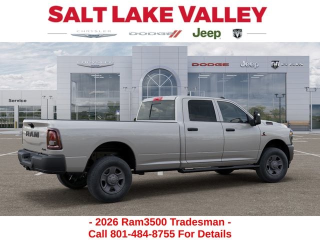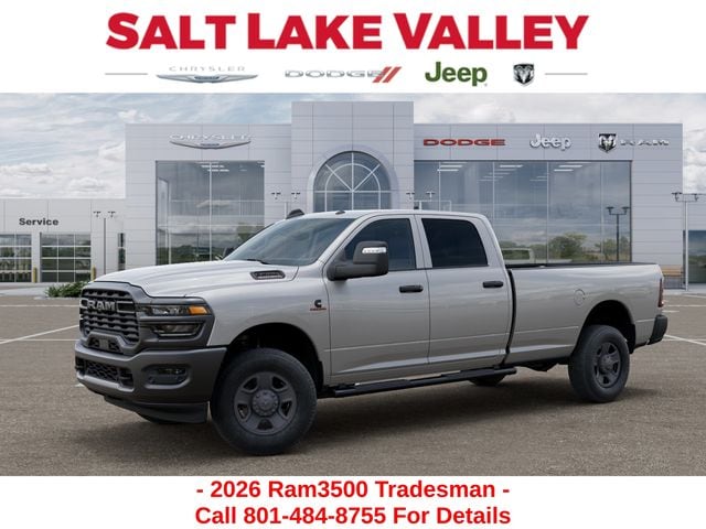 Get the job done and have fun doing it with the new Ram 3500 from Salt Lake Valley CDJR! Power, durability, and innovation come together in every Ram truck. Whether youâre working hard or exploring Utahâs backroads, the 3500 is built to handle it all. Call us today at 801-484-8755 to schedule a time to check it out! 2026 Ram 3500 Tradesman Silver Zynith 6.7L I6
