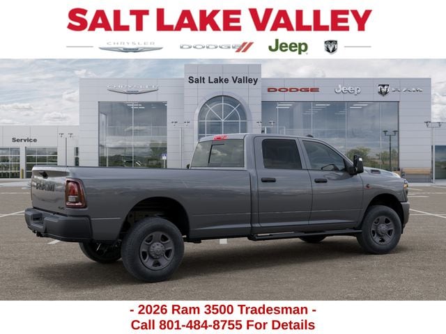 Get the job done and have fun doing it with the new Ram 3500 from Salt Lake Valley CDJR! Power, durability, and innovation come together in every Ram truck. Whether youâre working hard or exploring Utahâs backroads, the 3500 is built to handle it all. Call us today at 801-484-8755 to schedule a time to check it out! 2026 Ram 3500 Tradesman Ceramic Gray Clearcoat 6.7L I6