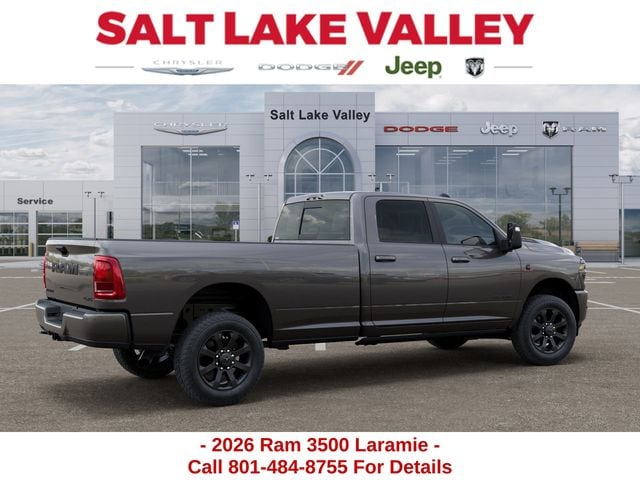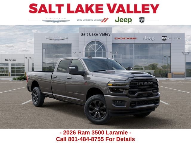 Get the job done and have fun doing it with the new Ram 3500 from Salt Lake Valley CDJR! Power, durability, and innovation come together in every Ram truck. Whether youâre working hard or exploring Utahâs backroads, the 3500 is built to handle it all. Call us today at 801-484-8755 to schedule a time to check it out! 2026 Ram 3500 Laramie Granite Crystal Metallic Clearcoat 6.7L I6