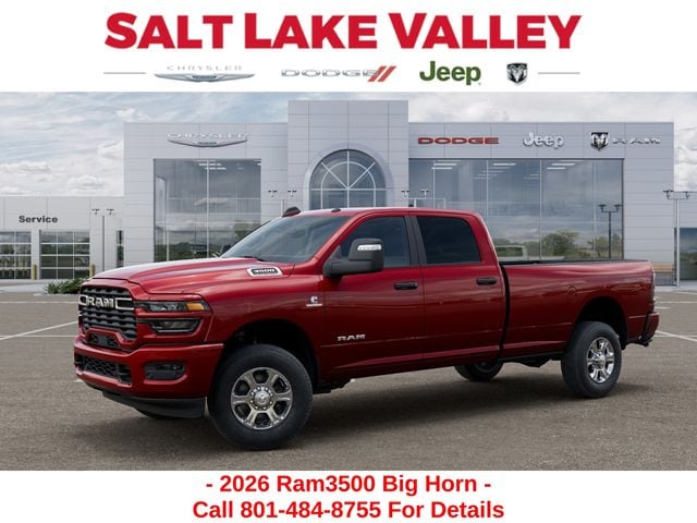 Get the job done and have fun doing it with the new Ram 3500 from Salt Lake Valley CDJR! Power, durability, and innovation come together in every Ram truck. Whether youâre working hard or exploring Utahâs backroads, the 3500 is built to handle it all. Call us today at 801-484-8755 to schedule a time to check it out! 2026 Ram 3500 Big Horn Molten Red Pearlcoat 6.7L I6