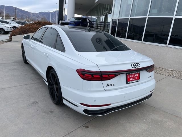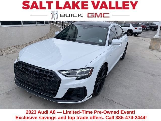 Take your drives to the next level with this Audi A8 from Salt Lake Valley Buick GMC! Engineered for a smooth ride, advanced convenience, and lasting dependability, this vehicle is ready to handle everything your day throws at you. Plus, enjoy a $1,000 finance savings, already included in the sale price, when you finance through one of our trusted lending partners. Looking for quality used cars in Salt Lake City? This Audi A8 delivers style, versatility, and value - perfect for daily commutes, family trips, or weekend adventures. Stop by Salt Lake Valley Buick GMC to see this vehicle in person and explore our wide selection of pre-owned cars, trucks, and SUVs. Browse online at www.slvbuickgmc.com or call 801-265-1511 to schedule your test drive today! With Black Optic Plus Package (Black Audi Rings & Model Badges, Black Brake Calipers, and Wheels: 21 10-Spoke Design w/Gloss Black Finish), Comfort Plus Package (Dual-Pane Acoustic Glass for Side Windows, Front Seat Massage Function, HD Matrix-Design LED Headlights, Head-Up Display, Heated Front Seat Armrests, Heated Rear Outboard Seats, and Valcona Leather Seat Upholstery), Contour/Ambient LED Interior Lighting Package, Executive Package (20 10-Parallel-Spoke-Design Wheels, Alu-Optic Buttons, Audi Adaptive Cruise Assist w/Lane Guidance, Audi Side Assist, Heated Steering Wheel, Intersection Assist, Remote Park Assist Plus, and Traffic Sign Recognition), 17 Speakers, 22-Way Heated Multi-Contour Comfort Front Seats, 4-Wheel Disc Brakes, ABS brakes, Adaptive suspension, Air Conditioning, Alloy wheels, AM/FM radio: SiriusXM, Audi smartphone interface (Apple CarPlay/Android Auto), Auto High-beam Headlights, Auto tilt-away steering wheel, Auto-dimming door mirrors, Auto-dimming Rear-View mirror, Auto-leveling suspension, Automatic temperature control, Bang & Olufsen Premium Sound System w/3D Sound, Black Cloth Headliner, Brake assist, Bumpers: body-color, Compass, Delay-off headlights, Door auto-latch, Driver door bin, Driver vanity mirror, Dual front impact airbags, Dual front side impact airbags, Electronic Stability Control, Emergency communication system: Audi connect CARE, PRIME & PLUS, Fine Grain Ash Natural Wood Gray Brown Inlays, Four wheel independent suspension, Front anti-roll bar, Front Bucket Seats, Front Center Armrest w/Storage, Front dual zone A/C, Front fog lights, Front reading lights, Garage door transmitter: HomeLink, Genuine wood door panel insert, Head restraints memory, Headlight cleaning, Heated door mirrors, Heated front seats, HVAC memory, Illuminated entry, Knee airbag, Leather Shift Knob, Leather steering wheel, Low tire pressure warning, Memory seat, Navigation system: MMI Navigation plus, Occupant sensing airbag, Outside temperature display, Overhead airbag, Overhead console, Panic alarm, Passenger door bin, Passenger vanity mirror, Power 2nd-Row Moonroof, Power adjustable front head restraints, Power door mirrors, Power driver seat, Power moonroof, Power passenger seat, Power steering, Power windows, Radio data system, Radio: Audi MMI Navigation Plus, Rain sensing wipers, Rear air conditioning, Rear anti-roll bar, Rear dual zone A/C, Rear fog lights, Rear reading lights, Rear seat center armrest, Rear side impact airbag, Rear Window Blind, Rear window defroster, Remote keyless entry, Seatbelt memory, Security system, Speed control, Speed-sensing steering, Speed-Sensitive Wipers, Steering wheel memory, Steering wheel mounted audio controls, Tachometer, Telescoping steering wheel, Tilt steering wheel, Traction control, Trip computer, Turn signal indicator mirrors, Valetta Leather Seat Upholstery, Variably intermittent wipers, Ventilated front seats, and Wheels: 19 15-Spoke Design designed for convenience and enjoyment, this Audi A8 is ready to take you wherever you want to go.