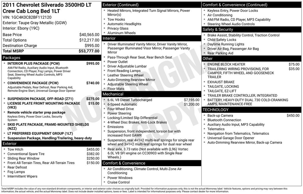 Duramax 6.6L V8 Turbodiesel, Allison 1000 6-Speed Automatic, 4WD, Ebony Cloth.