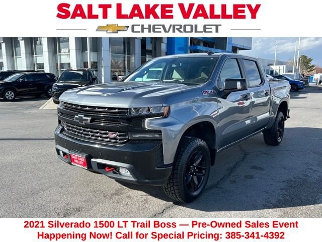 Turn every drive into something special with this Chevrolet Silverado 1500 from Salt Lake Valley Chevrolet! Designed for comfort, performance, and style, this vehicle comes fully equipped with modern technology and convenience features youâll love. Plus, enjoy a $1,000 finance savings, already included in the sale price, when you finance through one of our trusted lending partners. If youâre shopping for used cars in Salt Lake City, or searching for the perfect SUV, truck, or sedan, this Chevrolet Silverado 1500 delivers the dependability and value youâre looking for. Itâs the ideal match for your lifestyle - ready for everything from mountain adventures to city commutes. Visit Salt Lake Valley Chevrolet today and see why so many Utah drivers trust us for great deals on quality pre-owned vehicles. Explore our inventory online at www.slvchevy.com or call 801-969-8221 to schedule your test drive today! This impressive vehicle includes Bed Protection Package (Chevytec Spray-On Black Bedliner and Rear Wheelhouse Liners), Cloth Rear Seat w/Storage Package, Convenience Package w/Buckets Seats (10-Way Power Driver Seat w/Lumbar, Dual-Zone Automatic Climate Control, Floor Mounted Center Console, Heated Driver & Front Outboard Passenger Seats, Heated Steering Wheel, and Manual Tilt/Telescoping Steering Column), Preferred Equipment Group 2LT (12-Volt Rear Auxiliary Power Outlet, 170 Amp Alternator, 2 USB Ports (First Row), 4.2 Diagonal Color Display Driver Info Center, 4G LTE Wi-Fi Hot Spot Capable, 6-Speaker Audio System, All-Weather Floor Liner (LPO) (AAK), Auto-Locking Rear Differential, Auxiliary External Transmission Oil Cooler, Bluetooth® For Phone, Chevrolet Connected Access Capable, Color-Keyed Carpeting Floor Covering, Compass, Deep-Tinted Glass, Dual Exhaust w/Polished Outlets, Electric Rear-Window Defogger, Electrical Lock Control Steering Column, Electronic Cruise Control, EZ Lift Power Lock & Release Tailgate, Front LED Fog Lamps, High Gloss Black Grille, High Gloss Black Mirror Caps, Keyless Open & Start, Leather Wrapped Steering Wheel, LED Cargo Area Lighting, LED Reflector Headlamps, OnStar & Chevrolet Connected Services Capable, Performance Red Recovery Hooks, Power Door Locks, Power Front Windows w/Driver Express Up/Down, Power Front Windows w/Passenger Express Down, Power Rear Windows w/Express Down, Rear Dual USB Charging-Only Ports, Rear Vision Camera, Remote Vehicle Starter System, SiriusXM Radio, Standard Tailgate, Steering Wheel Audio Controls, and Theft Deterrent System (Unauthorized Entry)), Safety Package (Lane Change Alert w/Side Blind Zone Alert, Perimeter Lighting, Rear Cross Traffic Alert, and Ultrasonic Front & Rear Park Assist), Suspension Package (Heavy-Duty Air Filter and Hill Descent Control), Trailering Package (Hitch Guidance), 3.23 Rear Axle Ratio, 4-Wheel Disc Brakes, 6 Speakers, ABS brakes, Air Conditioning, Alloy wheels, AM/FM radio: SiriusXM, Apple CarPlay/Android Auto, Automatic temperature control, Brake assist, Cloth Seat Trim, Delay-off headlights, Driver door bin, Driver vanity mirror, Dual front impact airbags, Dual front side impact airbags, Electronic Stability Control, Front anti-roll bar, Front Bucket Seats, Front Center Armrest w/Storage, Front dual zone A/C, Front fog lights, Front License Plate Kit, Front reading lights, Front wheel independent suspension, Fully automatic headlights, Heated door mirrors, Heated front seats, Heated steering wheel, Illuminated entry, Integrated Trailer Brake Controller, Low tire pressure warning, Occupant sensing airbag, Off-Road Suspension w/2 Lift, Outside temperature display, Overhead airbag, Overhead console, Panic alarm, Passenger door bin, Passenger vanity mirror, Power door mirrors, Power driver seat, Power steering, Power windows, Premium audio system: Chevrolet Infotainment 3, Radio data system, Radio: Chevrolet Infotainment 3 System, Rear reading lights, Rear seat center armrest, Rear step b