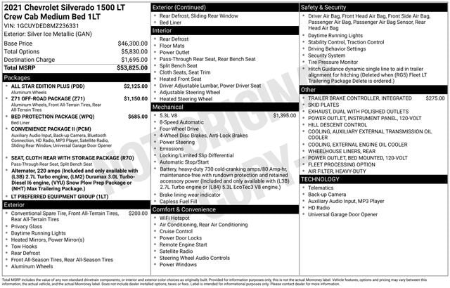Turn every drive into something special with this Chevrolet Silverado 1500 from Salt Lake Valley Chevrolet! Designed for comfort, performance, and style, this vehicle comes fully equipped with modern technology and convenience features youâll love. Plus, enjoy a $1,000 finance savings, already included in the sale price, when you finance through one of our trusted lending partners. If youâre shopping for used cars in Salt Lake City, or searching for the perfect SUV, truck, or sedan, this Chevrolet Silverado 1500 delivers the dependability and value youâre looking for. Itâs the ideal match for your lifestyle - ready for everything from mountain adventures to city commutes. Visit Salt Lake Valley Chevrolet today and see why so many Utah drivers trust us for great deals on quality pre-owned vehicles. Explore our inventory online at www.slvchevy.com or call 801-969-8221 to schedule your test drive today! This impressive vehicle includes All Star Edition Plus (Wheels: 20 x 9 Painted Aluminum), Bed Protection Package (Chevytec Spray-On Black Bedliner and Rear Wheelhouse Liners), Cloth Rear Seat w/Storage Package, Convenience Package (10-Way Power Driver Seat w/Lumbar, 12-Volt Rear Auxiliary Power Outlet, Dual-Zone Automatic Climate Control, Electric Rear-Window Defogger, Electrical Lock Control Steering Column, Heated Driver & Front Outboard Passenger Seats, Heated Steering Wheel, Keyless Open & Start, Leather Wrapped Steering Wheel, LED Cargo Area Lighting, Manual Tilt/Telescoping Steering Column, Rear Dual USB Charging-Only Ports, Remote Vehicle Starter System, and Theft Deterrent System (Unauthorized Entry)), Convenience Package II (120-Volt Bed Mounted Power Outlet, 120-Volt Instrument Panel Power Outlet, 2 USB Ports, HD Radio, HD Rear Vision Camera, Power Sliding Rear Window w/Rear Defogger, Radio: Chevrolet Infotainment 3 Plus System, Universal Home Remote, and Wireless Phone Projection), Preferred Equipment Group 1LT (2 USB Ports (First Row), 4.2 Diagonal Color Display Driver Info Center, 4G LTE Wi-Fi Hot Spot Capable, All-Star Edition, Auto-Locking Rear Differential, Bluetooth® For Phone, Chevrolet Connected Access Capable, Chrome Grille, Chrome Mirror Caps, Color-Keyed Carpeting Floor Covering, Compass, Deep-Tinted Glass, Electronic Cruise Control, EZ Lift Power Lock & Release Tailgate, Front Frame-Mounted Black Recovery Hooks, Front Rubberized Vinyl Floor Mats, OnStar & Chevrolet Connected Services Capable, Power Door Locks, Power Front Windows w/Driver Express Up/Down, Power Front Windows w/Passenger Express Down, Power Rear Windows w/Express Down, Rear 60/40 Folding Bench Seat (Folds Up), Rear Rubberized-Vinyl Floor Mats, Rear Vision Camera, SiriusXM Radio, Standard Tailgate, and Steering Wheel Audio Controls), Trailering Package (Hitch Guidance), Z71 Off-Road Package (Dual Exhaust w/Polished Outlets, Heavy-Duty Air Filter, and Hill Descent Control), 170 Amp Alternator, 220 Amp Alternator, 3.23 Rear Axle Ratio, 4-Wheel Disc Brakes, 40/20/40 Front Split-Bench Seat, 6 Speakers, ABS brakes, Air Conditioning, Alloy wheels, AM/FM radio: SiriusXM, Apple CarPlay/Android Auto, Automatic temperature control, Auxiliary External Transmission Oil Cooler, Brake assist, Bumpers: chrome, Cloth Seat Trim, Delay-off headlights, Driver door bin, Driver vanity mirror, Dual front impact airbags, Dual front side impact airbags, Electronic Stability Control, External Engine Oil Cooler, Front anti-roll bar, Front Center Armrest w/Storage, Front dual zone A/C, Front License Plate Kit, Front reading lights, Front wheel independent suspension, Fully automatic headlights, Heated door mirrors, Heated front seats, Heated steering wheel, Heavy Duty Suspension, Illuminated entry, Integrated Trailer Brake Controller, Low tire pressure warning, Occupant sensing airbag, Outside temperature display, Overhead airbag, Overhead console, Panic alarm, Passenger door bin, Passenger vanity mirror, Power door mirr