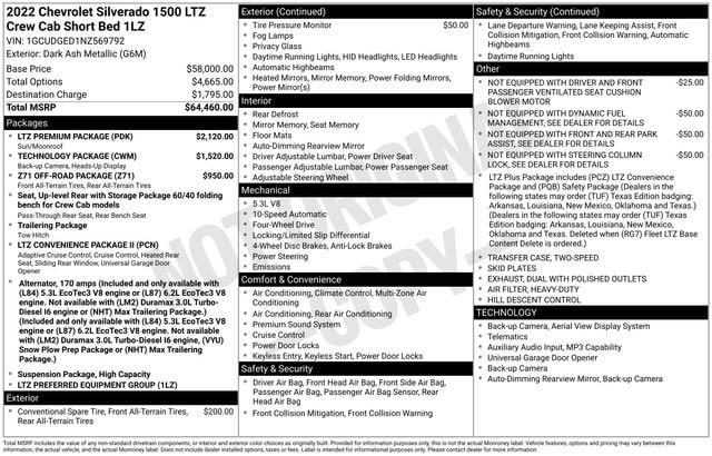 Take your drives to the next level with this Chevrolet Silverado 1500 from Salt Lake Valley Buick GMC! Engineered for a smooth ride, advanced convenience, and lasting dependability, this vehicle is ready to handle everything your day throws at you. Plus, enjoy a $1,000 finance savings, already included in the sale price, when you finance through one of our trusted lending partners. Looking for quality used cars in Salt Lake City? This Chevrolet Silverado 1500 delivers style, versatility, and value - perfect for daily commutes, family trips, or weekend adventures. Stop by Salt Lake Valley Buick GMC to see this vehicle in person and explore our wide selection of pre-owned cars, trucks, and SUVs. Browse online at www.slvbuickgmc.com or call 801-265-1511 to schedule your test drive today! With High Capacity Suspension Package, LTZ Convenience Package (2 USB Data Ports, Floor Mounted Center Console, Power Tilt & Telescoping Steering Column, Premium Bose 7-Speaker Sound System, Ventilated Driver & Front Passenger Seats, and Wireless Charging), LTZ Convenience Package II (2nd Row Heated Outboard Seats, Adaptive Cruise Control, Power Sliding Rear Window w/Rear Defogger, and Universal Home Remote), LTZ Plus Package, LTZ Premium Package (Power Sunroof), Preferred Equipment Group 1LZ (10-Way Power Driver Seat w/Lumbar, 10-Way Power Passenger Seat Adjuster w/Lumbar, 12.3 Multicolor Reconfigurable Digital Display, 120-Volt Bed Mounted Power Outlet, 120-Volt Instrument Panel Power Outlet, Auto-Dimming Inside Rear-View Mirror, Auto-Locking Rear Differential, Bluetooth® For Phone, Chevrolet Connected Access Capable, Chrome Mirror Caps, Color-Keyed Carpeting Floor Covering, Compass, Deep-Tinted Glass, Driver Memory, Dual Rear USB Ports (Charge Only), Electric Rear-Window Defogger, Electrical Steering Column Lock, Electronic Cruise Control, Front Frame-Mounted Black Recovery Hooks, Front LED Fog Lamps, Front Rainsensing Wipers, Front Rubberized Vinyl Floor Mats, Heated Driver & Front Outboard Passenger Seats, Heated Steering Wheel, Hitch Guidance w/Hitch View, Integrated Trailer Brake Controller, Keyless Open & Start, Leather Wrapped Steering Wheel, LED Cargo Area Lighting, OnStar & Chevrolet Connected Services Capable, Outside Heated Power-Adjustable Mirrors, Power Front Passenger Windows w/Express Up/Down, Power Front Windows w/Driver Express Up/Down, Power Rear Windows w/Express Down, Power Tailgate, Rear Rubberized-Vinyl Floor Mats, Rear Wheelhouse Liners, Remote Vehicle Starter System, SiriusXM w/360L, Standard Tailgate, Steering Wheel Audio Controls, Theft Deterrent System (Unauthorized Entry), Trailering App, Wi-Fi Hot Spot Capable, and Wireless Phone Projection), Safety Package (HD Surround Vision, Perimeter Lighting, Rear Cross Traffic Alert-Braking, Rear Pedestrian Detection, Safety Alert Seat, Trailer Camera Provisions, Trailer Side Blind Zone Alert, and Ultrasonic Front & Rear Park Assist), Technology Package (15 Diagonal Multicolor Head-Up Display, Bed View Camera, and Rear Camera Mirror), Trailering Package (Hitch Guidance), Up-Level Rear Seat w/Storage Package, Z71 Off-Road Package (Dual Exhaust w/Polished Outlets, Heavy-Duty Air Filter, Hill Descent Control, and Off-Road Suspension), 170 Amp Alternator, 3.23 Rear Axle Ratio, 4-Wheel Disc Brakes, 7 Speakers, ABS brakes, Air Conditioning, Alloy wheels, AM/FM radio: SiriusXM with 360L, Apple CarPlay/Android Auto, Auto High-beam Headlights, Auto-dimming door mirrors, Auto-dimming Rear-View mirror, Automatic Emergency Braking, Automatic temperature control, Auxiliary External Transmission Oil Cooler, Brake assist, Bumpers: chrome, Delay-off headlights, Driver door bin, Driver vanity mirror, Dual front impact airbags, Dual front side impact airbags, Electronic Stability Control, Electronic Transmission Range Selector Shifter, Following Distance Indicator, Forward Collision Alert, Front anti-roll bar, Front Bucket Seats, Front Center Ar
