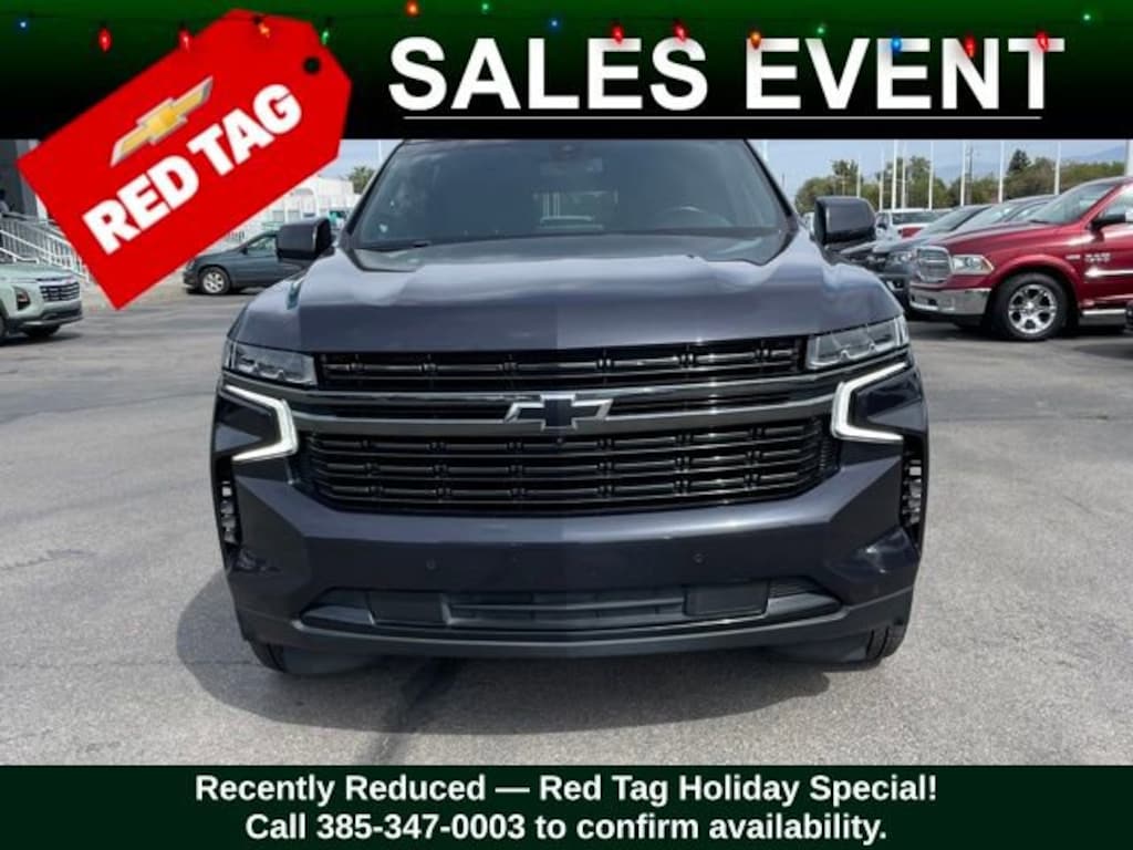 This Chevrolet Suburban is packed with all your favorite features and includes a $1,000 finance savings, already included into the sale price, when you finance through one of our trusted lending partners! Explore more quality vehicles at www.slvchevrolet.com or call 801-969-8221 today! Enjoy the great options on this Suburban like Driver Alert Package (Lane Change Alert w/Side Blind Zone Alert and Rear Cross Traffic Alert), License Plate Front Mounting Package, Luxury Package (2nd Row Pwr Release 60/40 Split-Folding Bench Seat, 3rd Row 60/40 Power-Folding Split-Bench, HD Surround Vision, Heated 2nd Row Outboard Seats, Heated Steering Wheel, Memory Settings, Outside Heated Power-Adjustable Mirrors, Power Tilt & Telescopic Steering Column, and Rear Pedestrian Alert), Preferred Equipment Group 1SP (10-Way Power Driver & Passenger Seat Adjusters, 1st & 2nd Row Color-Keyed Carpeted Floor Mats, Auto-Dimming Inside Rear-View Mirror, Automatic Stop/Start, Bose 9-Speaker Stereo Audio System Feature, Bright Front & Rear Door Sill Plates, Color-Keyed Carpeting Floor Covering, Driver & Front Outboard Passenger Airbags, Enhanced Driver Information Center, Floor Console w/Storage Area, Front & Rear Park Assist, Hands-Free Rear Power Programmable Liftgate, Heated Driver & Front Passenger Seats, Infotainment Display, Leather-Wrapped Steering Wheel, LED Daytime Running Lamps, Memory Settings For Driver, Remote Start, SiriusXM Radio w/360L, Start/Stop System Disable Button, Universal Home Remote, and Wireless Charging), 3.23 Rear Axle Ratio, 3rd row seats: split-bench, 4-Wheel Disc Brakes, 9 Speakers, ABS brakes, Air Conditioning, Alloy wheels, AM/FM radio: SiriusXM with 360L, Apple CarPlay/Android Auto, Auto High-beam Headlights, Auto-dimming Rear-View mirror, Automatic temperature control, Brake assist, Bumpers: body-color, Compass, Delay-off headlights, Driver door bin, Driver vanity mirror, Dual front impact airbags, Dual front side impact airbags, Electronic Stability Control, Emergency communication system: OnStar and Chevrolet connected services capable, Four wheel independent suspension, Front anti-roll bar, Front Bucket Seats, Front Center Armrest, Front dual zone A/C, Front reading lights, Fully automatic headlights, Garage door transmitter, Heated door mirrors, Heated front seats, Illuminated entry, Leather steering wheel, Low tire pressure warning, Memory seat, Navigation System, Not Equipped w/Front & Rear Park Assist, Not Equipped w/Heated 2nd Row Outboard Seats, Not Equipped w/Heated/Ventilated Front Seats, Not Equipped w/Steering Column Lock, Occupant sensing airbag, Outside temperature display, Overhead airbag, Overhead console, Panic alarm, Passenger door bin, Passenger vanity mirror, Perforated Leather Seating Surfaces, Power door mirrors, Power driver seat, Power Liftgate, Power passenger seat,