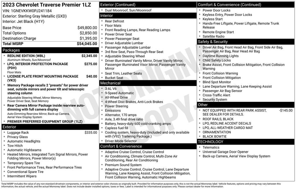 Sterling Gray Metallic 2023 Chevrolet Traverse Premier AWD 9-Speed Automatic 3.6L V6 SIDI VVT AWD.