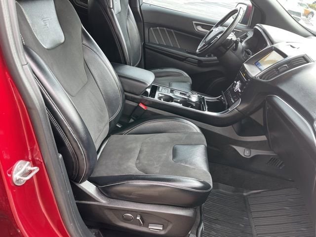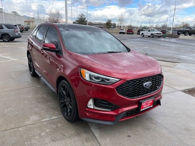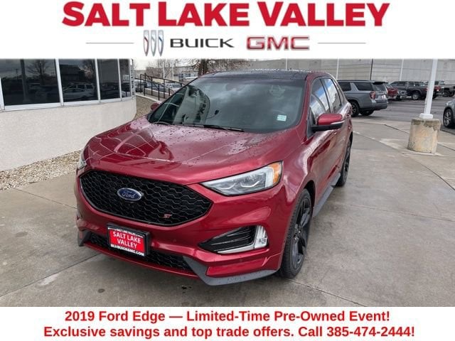 Take your drives to the next level with this Ford Edge from Salt Lake Valley Buick GMC! Engineered for a smooth ride, advanced convenience, and lasting dependability, this vehicle is ready to handle everything your day throws at you. Plus, enjoy a $1,000 finance savings, already included in the sale price, when you finance through one of our trusted lending partners. Looking for quality used cars in Salt Lake City? This Ford Edge delivers style, versatility, and value - perfect for daily commutes, family trips, or weekend adventures. Stop by Salt Lake Valley Buick GMC to see this vehicle in person and explore our wide selection of pre-owned cars, trucks, and SUVs. Browse online at www.slvbuickgmc.com or call 801-265-1511 to schedule your test drive today! With Cold Weather Package (Front & Rear Floor Liners, Heated Steering Wheel, and Windshield Wiper De-Icer), Equipment Group 401A (110V/150W AC Power Outlet, Adaptive Cruise Control w/Stop & Go, Adaptive LED Headlamps, Auto-Dimming Driver's Sideview Mirror, Cooled Front Seats, Enhanced Active Park Assist, Evasive Steering Assist, Foot-Activated Hands-Free Liftgate, Front 180 Degree Camera, Heated Rear-Seats, Lane Centering, Panoramic Vista Roof, Perimeter Alarm, Remote Start System, SiriusXM Traffic & Travel Link, Universal Garage Door Opener (UGDO), Voice-Activated Touchscreen Navigation System, and Wireless Charging Pad), 12 Speakers, 4-Wheel Disc Brakes, ABS brakes, Air Conditioning, Alloy wheels, AM/FM radio: SiriusXM, AppLink/Apple CarPlay and Android Auto, Auto High-beam Headlights, Auto tilt-away steering wheel, Auto-dimming Rear-View mirror, Automatic temperature control, Axle Ratio: TBA, Brake assist, Bumpers: body-color, CD player, Compass, Delay-off headlights, Driver door bin, Driver vanity mirror, Dual front impact airbags, Dual front side impact airbags, Electronic Stability Control, Emergency communication system: SYNC 3 911 Assist, Four wheel independent suspension, Front anti-roll bar, Front Bucket Seats, Front Center Armrest w/Storage, Front dual zone A/C, Front fog lights, Front reading lights, Fully automatic headlights, Heated door mirrors, Heated front seats, Illuminated entry, Knee airbag, Leather-Trimmed Heated ST Bolstered Bucket Seats, Low tire pressure warning, Memory seat, Occupant sensing airbag, Outside temperature display, Overhead airbag, Overhead console, Panic alarm, Passenger door bin, Passenger vanity mirror, Power door mirrors, Power driver seat, Power Liftgate, Power passenger seat, Power steering, Power windows, Radio: B&O Sound System by Bang & Olufsen, Rain sensing wipers, Rear anti-roll bar, Rear Parking Sensors, Rear reading lights, Rear seat center armrest, Rear window defroster, Rear window wiper, Remote keyless entry, Roof rack: rails only, SiriusXM Radio, Speed control, Speed-Sensitive Wipers, Split folding rear seat, Spoiler, Steering wheel memory, Steering wheel mounted audio controls, SYNC 3 Communications & Entertainment System, Tachometer, Telescoping steering wheel, Tilt steering wheel, Traction control, Trip computer, Turn signal indicator mirrors, Variably intermittent wipers, Wheels: 20 Bright-Machined Aluminum, and Wheels: 21 Premium Gloss Black-Painted Aluminum designed for convenience and enjoyment, this Ford Edge is ready to take you wherever you want to go.Odometer is 5497 miles below market average!19/26 City/Highway MPGClean CARFAX.