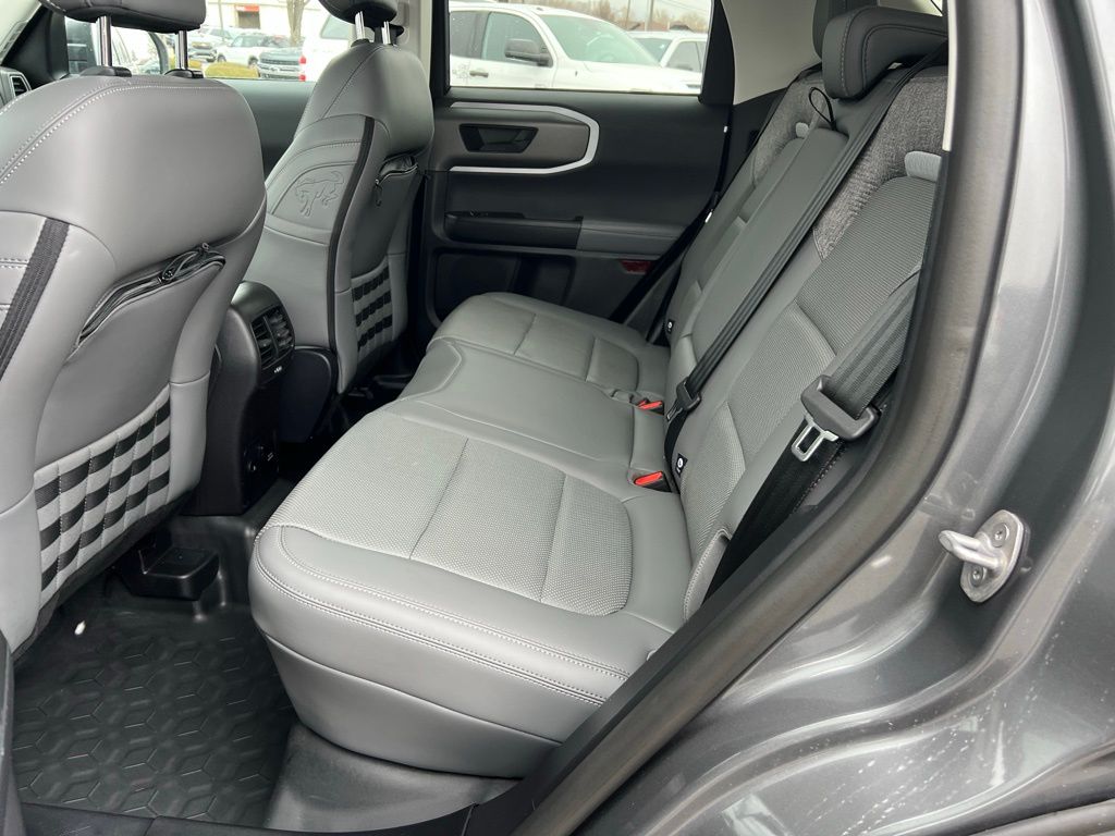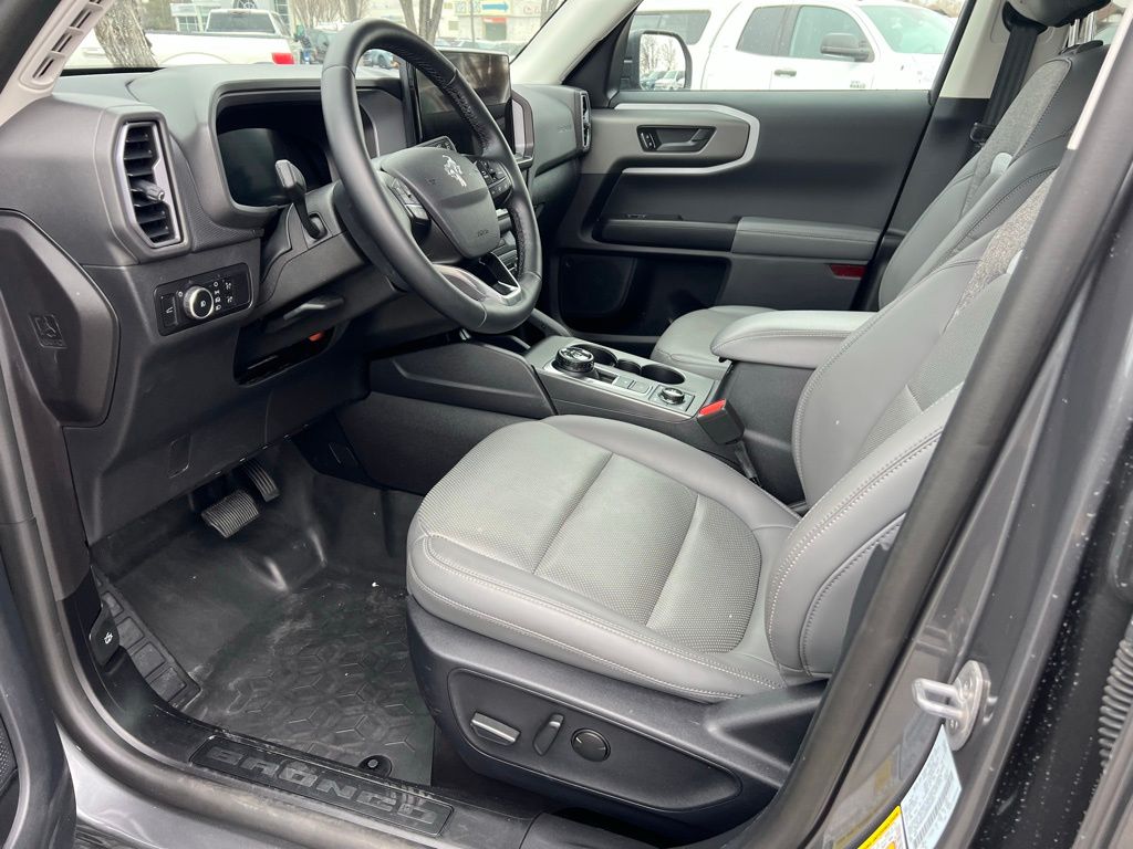 I got a 2025 Big Bend with the black diamond off road package. The steel modular front and rear in combination with bush guard gives this year model. A very aggressive off road look. With the ability to easily mount accessories and power them with the factory installed auxiliary switches. Hitch receiver seamlessly mounted into the rear steel bumper flanked by some very chunky recovery points. The upgraded aluminum rims wrapped with Continental all-terrains. It make this the most capable bronco sport yet. The interior of the 2025 has been updated with a new 13 inch touchscreen with Android Auto and apple car play. The lines of the dash flow elegantly from the new infotainment screen to the new all digital 12 inch gauge chaster. Toggling through the different modes on the gauge chaster is very intuitive, and all the displays are laid out very cleanly. Moving from gauge chaster the center storage cubby just below the infotainment screen there is a wireless charger and USB/ USB-c ports. The passenger side of that same cubby gets a handle and a matching one on the roof just in case the driver bucks a little too much. The passenger also gets a mesh storage area. That leads us to the fact this vehicle has tons of storage options all throughout. You have pockets on the sides of the front two seat big enough for the latest new phones. Very generous door storage on all four doors plus huge glove box and center console with 12 volt outlet. The back side of the center console has air vents and another 12 volt outlet plus a 110 outlet. Now getting to the cargo area it is massive for a crossover SUV. With off road package you get a cargo management system and a very nice rubber mat. Under that there is a full size tire plus scissor jack and funnel to use with the capless filler system. On the liftgate there isa pair of very bright led lights turned on with a switch in the cargo area. This feature packed vehicle has tons awesome gadgets and hidden a little homages I spend all day just talk that. At the end of the day it is car. So how does it drive. It is wonderful, the steering and pedal response is beautiful. Rides very smooth and little to no road noise going down the highway. The active cruise control and co-pilot 360 have been very handy. The car literally drives itself most of the time. There is not enough good things I could same about this car. I love it and you pick one too. You will see what I mean. - 5.0