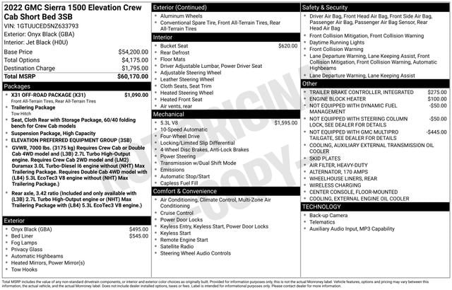 Turn every drive into something special with this GMC Sierra 1500 from Salt Lake Valley Chevrolet! Designed for comfort, performance, and style, this vehicle comes fully equipped with modern technology and convenience features youâll love. Plus, enjoy a $1,000 finance savings, already included in the sale price, when you finance through one of our trusted lending partners. If youâre shopping for used cars in Salt Lake City, or searching for the perfect SUV, truck, or sedan, this GMC Sierra 1500 delivers the dependability and value youâre looking for. Itâs the ideal match for your lifestyle - ready for everything from mountain adventures to city commutes. Visit Salt Lake Valley Chevrolet today and see why so many Utah drivers trust us for great deals on quality pre-owned vehicles. Explore our inventory online at www.slvchevy.com or call 801-969-8221 to schedule your test drive today! This impressive vehicle includes Cloth Rear Seat w/Storage Package, High Capacity Suspension Package, Preferred Equipment Group 3SB (120-Volt Bed Mounted Power Outlet, 120-Volt Instrument Panel Power Outlet, 2 Charge/Data USB Ports, 2 Type-C Charge-Only Rear USB Ports, 6-Speaker Audio System Feature, Auto-Locking Rear Differential, Body Color Header w/Gloss Black Mesh Grille Bars, Color-Keyed Carpeting Floor Covering, Compass, Deep-Tinted Glass, Electric Rear-Window Defogger, Electrical Steering Column Lock, Front Frame-Mounted Black Recovery Hooks, Front Rubberized-Vinyl Floor Mats, GMC Connected Access Capable, HD Rear Vision Camera, Heated Steering Wheel, Keyless Open & Start, LED Cargo Area Lighting, Manual Tilt-Wheel & Telescoping Steering Column, OnStar & GMC Connected Services Capable, Power Door Locks, Power Front Windows w/Driver Express Up/Down, Power Front Windows w/Passenger Express Down, Power Rear Windows w/Express Down, Push Button Start, Rear Rubberized-Vinyl Floor Mats, Remote Vehicle Starter System, SiriusXM w/360L, Steering Wheel Audio Controls, Theft Deterrent System (Unauthorized Entry), Wi-Fi Hotspot Capable, and Wireless Phone Projection), Trailering Package (Hitch Guidance), X31 Off-Road Package (Dual Exhaust System, Heavy-Duty Air Filter, Hill Descent Control, Off-Road Suspension, Rear Wheelhouse Liners, and X31 Hard Badge), 10-Way Power Driver Seat Adjuster w/Lumbar, 170 Amp Alternator, 2 Charge/Data USB Ports Inside Center Console, 220 Amp Alternator, 4-Way Manual Passenger Seat Adjuster, 4-Wheel Disc Brakes, 6 Speakers, ABS brakes, Air Conditioning, Alloy wheels, AM/FM radio: SiriusXM with 360L, Apple CarPlay/Android Auto, Auto High-beam Headlights, Automatic Emergency Braking, Automatic temperature control, Auxiliary External Transmission Oil Cooler, Brake assist, Buckle to Drive, Bumpers: body-color, Cloth Seat Trim, Delay-off headlights, Driver door bin, Driver vanity mirror, Dual front impact airbags, Dual front side impact airbags, Electronic Precision Shift, Electronic Stability Control, Emergency communication system: OnStar and GMC Connected Services capable, Engine Block Heater, Exterior Parking Camera Rear, External Engine Oil Cooling, Floor-Mounted Center Console, Following Distance Indicator, Forward Collision Alert, Front 40/20/40 Split-Bench Seat, Front anti-roll bar, Front Bucket Seats, Front Center Armrest w/Storage, Front dual zone A/C, Front fog lights, Front Pedestrian Braking, Front reading lights, Front wheel independent suspension, Fully automatic headlights, Heated door mirrors, Heated Driver & Front Outboard Passenger Seating, Heated front seats, Heated steering wheel, Illuminated entry, Integrated Trailer Brake Controller, IntelliBeam Automatic High Beam On/Off, Lane Keep Assist w/Lane Departure Warning, Low tire pressure warning, Navigation System, Not Equipped w/Dynamic Fuel Management, Not Equipped w/Steering Column Lock, Not Equipped with GMC MultiPro Tailgate, Occupant sensing airbag, Outside temperature display, Overhead airbag, Overhead con