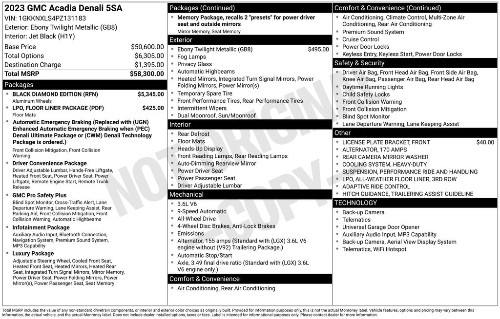 Check out our award winning dealership! 5-star google review, drive a little save a lot. Black Diamond Edition (Wheels: 20" Aluminum Paint w/After Midnight Finish), Denali Technology Package (Adaptive Cruise Control, Enhanced Automatic Emergency Braking, HD Surround Vision, Rear Camera Mirror, and Rear Camera Mirror Washer), Denali Ultimate Package (Adaptive Ride Control, Dual SkyScape 2-Panel Power Sunroof, and Performance Ride & Handling Suspension), Floor Liner Package (LPO) (1st & 2nd Row All-Weather Floor Liner (LPO), 3rd Row All-Weather Floor Liner (LPO), and Integrated Cargo Liner (LPO)), Preferred Equipment Group 5SA, Trailering Package (Heavy-Duty Cooling System, Hitch Guidance w/Hitch View, and Trailering Assist Guidelines), AWD, Black Leather, 170 Amp Alternator, 20" Ultra Bright Machined Aluminum Wheels, 3.49 Final Drive Axle Ratio, 3rd row seats: split-bench, 4-Wheel Disc Brakes, 6-Passenger (2-2-2 Seating Configuration), 8 Speakers, 8-Way Power Driver Seat Adjuster, 8-Way Power Passenger Seat Adjuster, ABS brakes, Air Conditioning, Alloy wheels, AM/FM radio: SiriusXM with 360L, Apple CarPlay/Android Auto, Auto High-beam Headlights, Auto-dimming door mirrors, Auto-dimming Rear-View mirror, Automatic temperature control, Bose Premium 8-Speaker Audio System Feature, Brake assist, Bumpers: body-color, Compass, Delay-off headlights, Driver door bin, Driver vanity mirror, Dual front impact airbags, Dual front side impact airbags, Electronic Stability Control, Emergency communication system: OnStar and GMC connected services capable, Four wheel independent suspension, Front anti-roll bar, Front Bucket Seats, Front Center Armrest, Front dual zone A/C, Front fog lights, Front License Plate Bracket, Front reading lights, Fully automatic headlights, Garage door transmitter, Heads-Up Display, Heated & Ventilated Driver & Front Passenger Seats, Heated door mirrors, Heated Driver & Front Passenger Seats, Heated front seats, Heated Rear Outboard Seating Positions, Heated rear seats, Heated steering wheel, Illuminated entry, Knee airbag, Low tire pressure warning, Memory seat, Navigation System, Occupant sensing airbag, Outside temperature display, Overhead airbag, Overhead console, Panic alarm, Passenger door bin, Passenger vanity mirror, Perforated Leather-Appointed Seat Trim, Power door mirrors, Power Driver Lumbar Control Seat Adjuster, Power driver seat, Power Liftgate, Power Passenger Lumbar Control Seat Adjuster, Power passenger seat, Power steering, Power windows, Radio data system, Radio: AM/FM 8" Diagonal Multi-Touch Navigation, Rear air conditioning, Rear anti-roll bar, Rear reading lights, Rear window defroster, Rear window wiper, Remote keyless entry, Roof rack: rails only, Security system, SiriusXM w/360L, Speed control, Speed-sensing steering, Spoiler, Steering wheel memory, Steering wheel mounted audio controls, Tachometer, Telescoping steering wheel, Tilt steering wheel, Traction control, Trip computer, Turn signal indicator mirrors, Variably intermittent wipers, Ventilated front seats, Voltmeter, and Wireless Apple CarPlay/Wireless Android Auto Sale Price Includes $1,000 Finance Savings. Contact Dealer For Details.