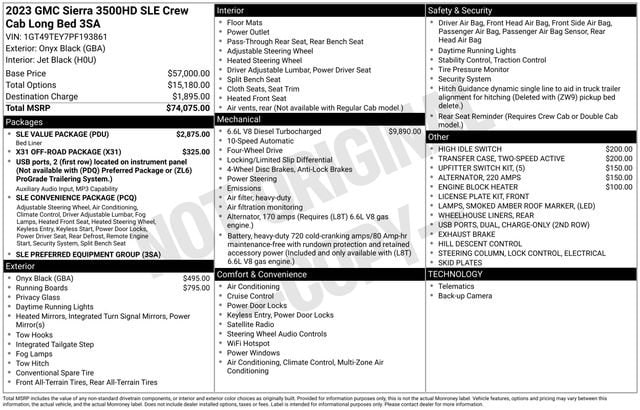 Take your drives to the next level with this GMC Sierra 3500HD from Salt Lake Valley Buick GMC! Engineered for a smooth ride, advanced convenience, and lasting dependability, this vehicle is ready to handle everything your day throws at you. Plus, enjoy a $1,000 finance savings, already included in the sale price, when you finance through one of our trusted lending partners. Looking for quality used cars in Salt Lake City? This GMC Sierra 3500HD delivers style, versatility, and value - perfect for daily commutes, family trips, or weekend adventures. Stop by Salt Lake Valley Buick GMC to see this vehicle in person and explore our wide selection of pre-owned cars, trucks, and SUVs. Browse online at www.slvbuickgmc.com or call 801-265-1511 to schedule your test drive today! With Preferred Equipment Group 3SA (2-Speed Electronic Shift Transfer Case, Chrome Surround Grille w/High Gloss Black Mesh, Compass Located In Instrument Cluster, Deep-Tinted Glass, GMC Connected Access Capable, Integrated Trailer Brake Controller, Manual Tilt Wheel Steering Column, OnStar & GMC Connected Services Capable, Power Door Locks, Power Front Windows w/Driver Express Up/Down, Power Front Windows w/Passenger Express Down, Power Rear Windows w/Express Down, Remote Keyless Entry, SiriusXM Radio, Steering Wheel Audio Controls, and Wi-Fi Hotspot Capable), SLE Convenience Package (10-Way Power Driver Seat Adjuster w/Lumbar, 12-Volt Rear Auxiliary Power Outlet, 2nd Row Dual USB Charge-Only Ports, Dual-Zone Automatic Climate Control, Electric Rear-Window Defogger, Electrical Lock Control Steering Column, Front 40/20/40 Split-Bench Seats w/Lockable Storage, Heated Driver & Front Outboard Passenger Seats, Heated Steering Wheel, Keyless Open & Start, LED Cargo Area Lighting, LED Fog Lamps, Manual Tilt-Wheel/Telescoping Steering Column, Remote Vehicle Starter System, and Unauthorized Entry Theft-Deterrent System), SLE Value Package (Spray-On Pickup Bed Liner w/GMC Logo), Suspension Package, 2-Speed Active Transfer Case, 220 Amp Alternator, 4-Way Manual Driver Seat Adjuster, 4-Way Manual Passenger Seat Adjuster, 4-Wheel Disc Brakes, 6 Speakers, 6-Speaker Audio System Feature, 6 Rectangular Chromed Tubular Assist Steps, ABS brakes, Air Conditioning, AM/FM radio: SiriusXM, Apple CarPlay/Android Auto, Brake assist, Bumpers: chrome, Cloth Seat Trim, Compass, Delay-off headlights, Driver door bin, Driver vanity mirror, Dual front impact airbags, Dual front side impact airbags, Electronic Stability Control, Engine Block Heater, Exhaust Brake, Front 40/20/40 Split-Bench Seats, Front anti-roll bar, Front Center Armrest w/Storage, Front License Plate Kit, Front reading lights, Front wheel independent suspension, Fully automatic headlights, Heated door mirrors, Heavy-Duty 80 Amp Battery, High Idle Switch, Illuminated entry, Low tire pressure warning, Occupant sensing airbag, Outside temperature display, Overhead airbag, Overhead console, Panic alarm, Passenger door bin, Passenger vanity mirror, Pickup Bed, Power door mirrors, Power steering, Power windows, Premium audio system: GMC Infotainment System, Radio: AM/FM w/GMC Infotainment System, Rear reading lights, Rear step bumper, Remote keyless entry, Speed control, Split folding rear seat, Steering wheel mounted audio controls, Tachometer, Tilt steering wheel, Traction control, Trip computer, Turn signal indicator mirrors, Upfitter Switch Kit (5), Variably intermittent wipers, Voltmeter, and Winter Grille Cover designed for convenience and enjoyment, this GMC Sierra 3500HD is ready to take you wherever you want to go.