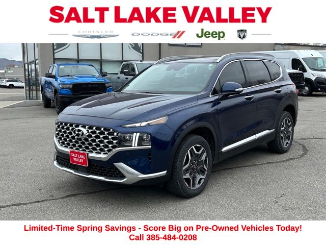Get ready to hit the road in this Hyundai Santa Fe, a standout choice for drivers looking for reliability, performance, and style! This impressive vehicle is packed with premium features designed to make every drive more enjoyable. Price excludes tax, title, license fee, government fees, and $449 dealer documentary service fee. While every reasonable effort is made to ensure accuracy, we are not responsible for errors or omissions, and vehicles may be sold prior to inquiryâ"please contact the dealer to confirm availability. All financing is subject to approved credit. Whether youâre searching for used cars in Salt Lake City, a dependable SUV, or a powerful truck, this Hyundai Santa Fe delivers everything you need and more. Visit Salt Lake Valley Chrysler Dodge Jeep Ram today to test drive or explore our entire selection of quality pre-owned vehicles. Donât wait - shop online at www.slvcdjr.com or call 801-484-8755 to learn more! This amazing vehicle comes loaded with options like Cargo Package (Cargo Net, Cargo Tray, and First Aid Kit), Option Group 01, 12 Speakers, 4-Wheel Disc Brakes, ABS brakes, Air Conditioning, Alloy wheels, AM/FM radio: SiriusXM, Apple CarPlay & Android Auto, Auto High-beam Headlights, Auto-dimming Rear-View mirror, Automatic temperature control, Axle Ratio: 3.316, Brake assist, Bumper Applique, Bumpers: body-color, Cargo Cover/Screen, Carpeted Floor Mats, Delay-off headlights, Driver door bin, Driver vanity mirror, Dual front impact airbags, Dual front side impact airbags, Electronic Stability Control, Emergency communication system, Four wheel independent suspension, Front anti-roll bar, Front Bucket Seats, Front Center Armrest, Front dual zone A/C, Front reading lights, Fully automatic headlights, Garage door transmitter: HomeLink, harman/kardon® Speakers, Heated & Ventilated Front Bucket Seats, Heated door mirrors, Heated front seats, Heated rear seats, Heated steering wheel, Illuminated entry, Leather Seat Trim, Leather steering wheel, Low tire pressure warning, Memory seat, Navigation System, Occupant sensing airbag, Outside temperature display, Overhead airbag, Overhead console, Panic alarm, Passenger door bin, Passenger vanity mirror, Power door mirrors, Power driver seat, Power Liftgate, Power moonroof, Power passenger seat, Power steering, Power windows, Radio: AM/FM/MP3 Harman Kardon Display Audio, Rain sensing wipers, Rear anti-roll bar, Rear seat center armrest, Rear window defroster, Rear window wiper, Remote keyless entry, Security system, Speed control, Speed-sensing steering, Split folding rear seat, Spoiler, Steering wheel mounted audio controls, Tachometer, Telescoping steering wheel, Tilt steering wheel, Traction control, Trip computer, Turn signal indicator mirrors, Variably intermittent wipers, Ventilated front seats, and Wheels: 19" x 7.5J Alloy, making it the perfect choice for your next adventure. Priced below KBB Fair Purchase Price!