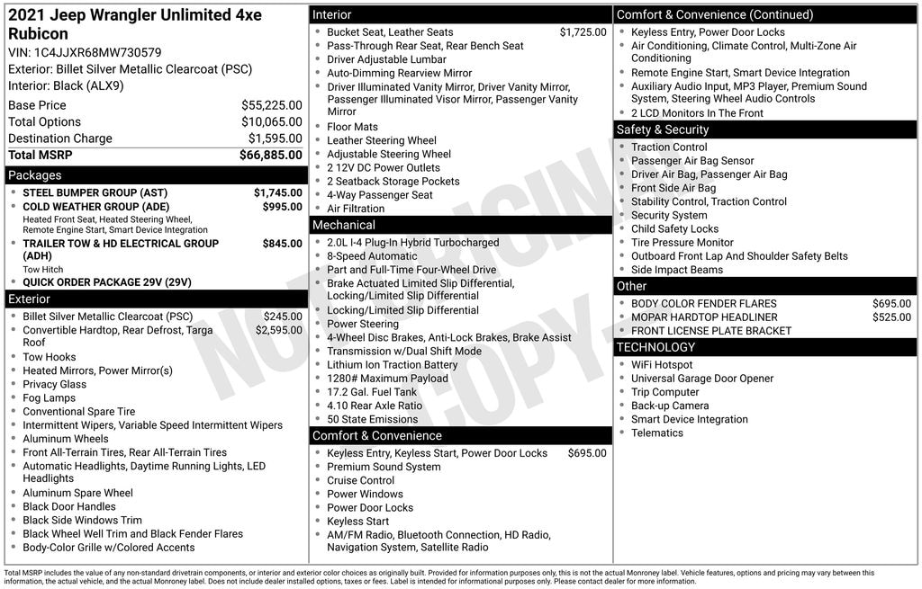 Billet Silver Metallic Clearcoat 2021 Jeep Wrangler Unlimited Rubicon 4xe 4WD 8-Speed Automatic 2.0L I4 DOHC 2.0L I4 DOHC.