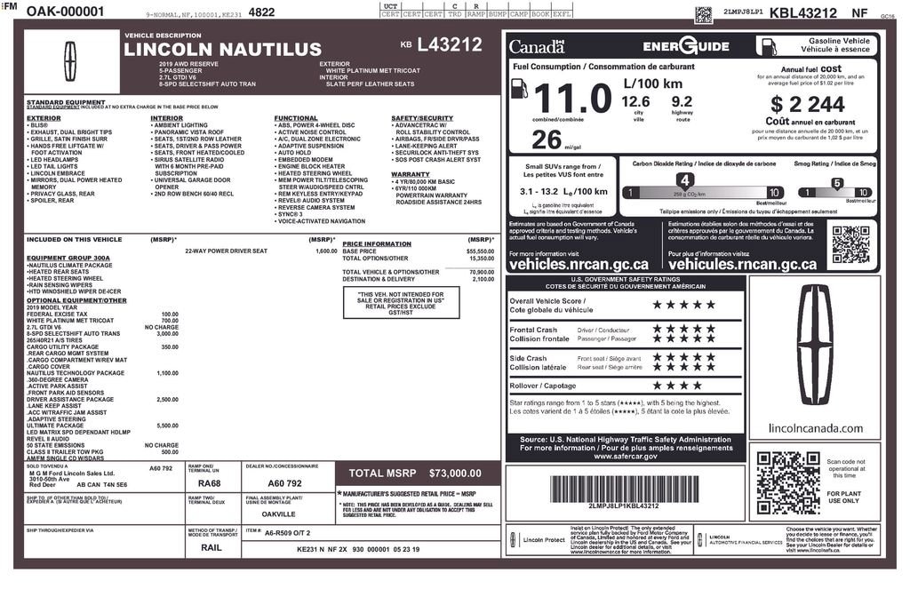 White 2019 Lincoln Nautilus Reserve AWD 8-Speed Automatic V6Recent Arrival! 19/26 City/Highway MPGCheck out our 5 Star Google Reviews! Drive a little save a lot. Sale Price Includes $1,000 Finance Savings. Contact Dealer For Details.
