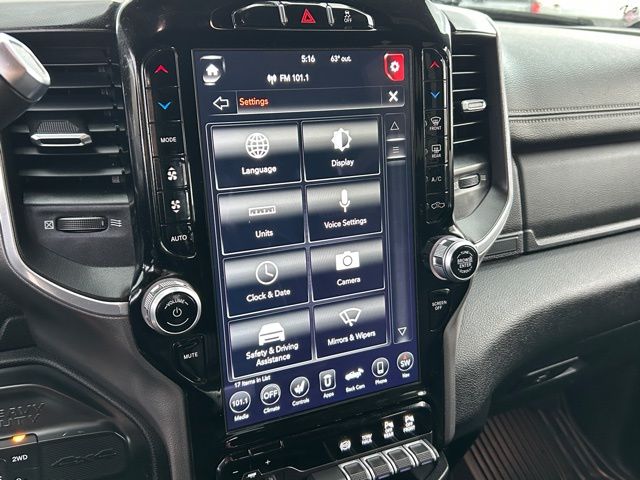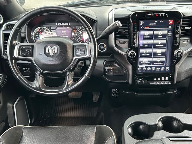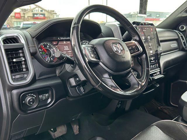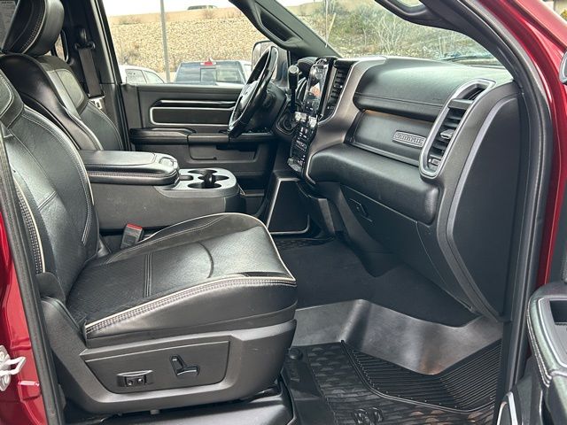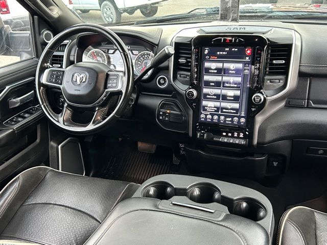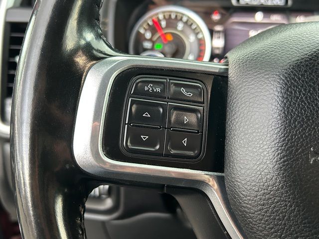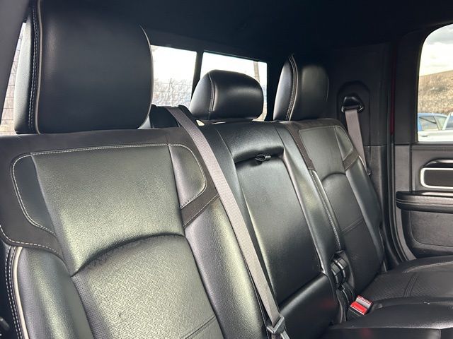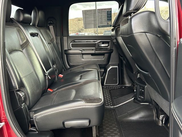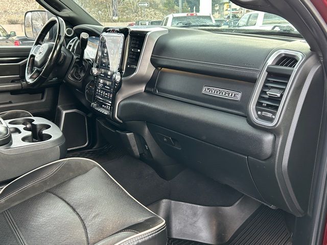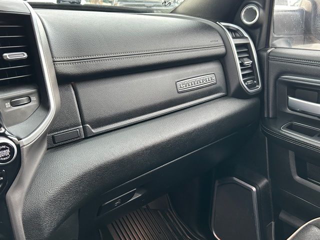 For your comfort and convenience, this Laramie model offers ventilated front seats, heated second-row seats, a heated steering wheel, and a power-adjustable driver's seat with memory settings. The Laramie's luxurious interior is further enhanced by premium leather upholstery, black interior accents, and a premium sound system that will immerse you in your favorite music.