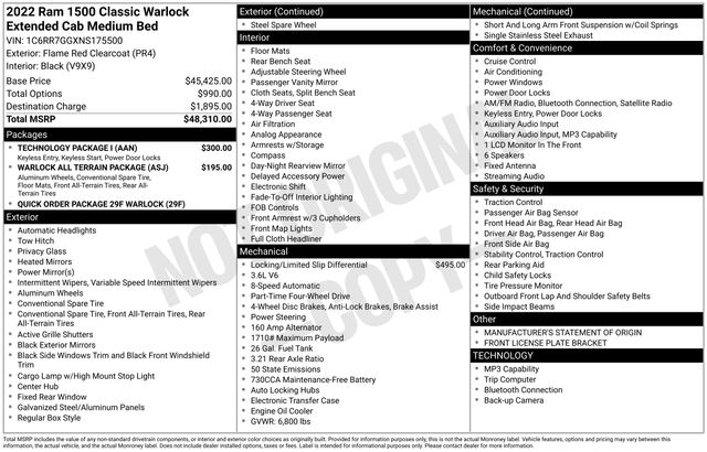 Get ready to hit the road in this Ram 1500 Classic, a standout choice for drivers looking for reliability, performance, and style! This impressive vehicle is packed with premium features designed to make every drive more enjoyable. Price excludes tax, title, license fee, government fees, and $449 dealer documentary service fee. While every reasonable effort is made to ensure accuracy, we are not responsible for errors or omissions, and vehicles may be sold prior to inquiryâ"please contact the dealer to confirm availability. All financing is subject to approved credit. Whether youâre searching for used cars in Salt Lake City, a dependable SUV, or a powerful truck, this Ram 1500 Classic delivers everything you need and more. Visit Salt Lake Valley Chrysler Dodge Jeep Ram today to test drive or explore our entire selection of quality pre-owned vehicles. Donât wait - shop online at www.slvcdjr.com or call 801-484-8755 to learn more! This amazing vehicle comes loaded with options like Quick Order Package 29F Warlock (4x4 Flat Black Badge, B-Pillar Black Out, Bi-Function Halogen Projector Headlamps, Black Exterior Truck Badging, Black Grille w/RAM Lettering, Black Headlamp Filler Panel, Black Powder Coated Front Bumper, Black Powder Coated Rear Bumper, Black RAM Head Tailgate Badge, Black Wheel Flares, Front Wheel Well Liners, ParkSense Rear Park Assist System, Raised Ride Height, Rear Extra HD Shock Absorbers, Semi-Gloss Black Hub, Sport Tail Lamps, Warlock, Warlock Interior Accents, and Wheels: 20" x 9" Semi-Gloss Black Aluminum), Technology Package I (2-Door Passive Entry, Front Door Locks, Body Color Door Handles, and Pushbutton Start), Warlock All Terrain Package (Center Hub, MOPAR Front & Rear Rubber Floor Mats, and Wheels: 17" x 8" Matte Black Aluminum), 3.21 Rear Axle Ratio, 4-Wheel Disc Brakes, 40/20/40 Split Bench Seat, 6 Speakers, ABS brakes, Active Grille Shutters, Air Conditioning, Alloy wheels, AM/FM radio: SiriusXM, Anti-Spin Differential Rear Axle, Audio Input Jack for Mobile Devices, Black Exterior Mirrors, Brake assist, Bumpers: chrome, Charge Only Remote USB Port, Cloth 40/20/40 Bench Seat, Compass, Delay-off headlights, Driver door bin, Dual front impact airbags, Dual front side impact airbags, Electronic Shift, Electronic Stability Control, Engine Calibration Flash, V2, Exterior Mirrors w/Heating Element, Front anti-roll bar, Front Armrest w/3 Cupholders, Front Center Armrest w/Storage, Front License Plate Bracket, Front reading lights, Front wheel independent suspension, Fully automatic headlights, GPS Antenna Input, Heated door mirrors, Illuminated entry, Integrated Voice Command w/Bluetooth, Low tire pressure warning, Manufacturer's Statement of Origin, Occupant sensing airbag, Outside temperature display, Overhead airbag, Overhead console, Panic alarm, ParkView Rear Back-Up Camera, Passenger door bin, Passenger vanity mirror, Power door mirrors, Power steering, Power windows, Radio data system, Radio: Uconnect 3 w/5" Display, Rear anti-roll bar, Rear step bumper, Remote keyless entry, Remote USB Port, Rotary Shifter-Black, Speed control, Tachometer, Tilt steering wheel, Tip Start, Traction control, Trip computer, Variably intermittent wipers, and Voltmeter, making it the perfect choice for your next adventure.
