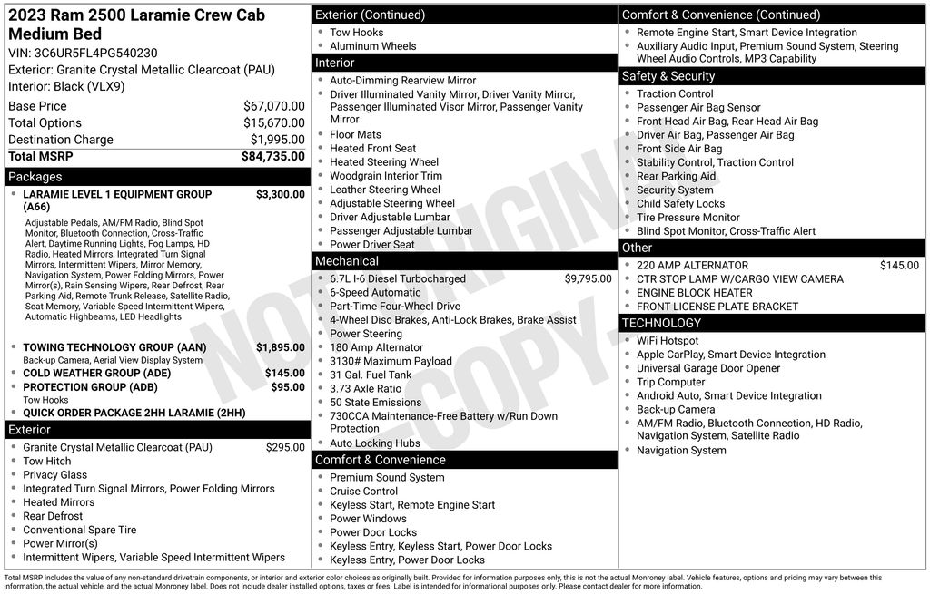 Granite Crystal Metallic Clearcoat 2023 Ram 2500 Laramie 4WD 6-Speed Automatic Cummins 6.7L I6 Turbodiesel