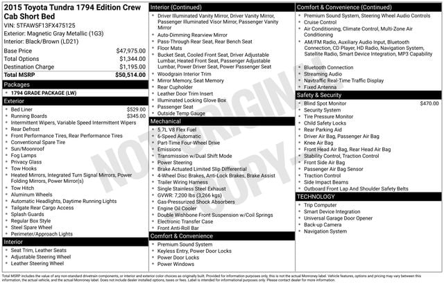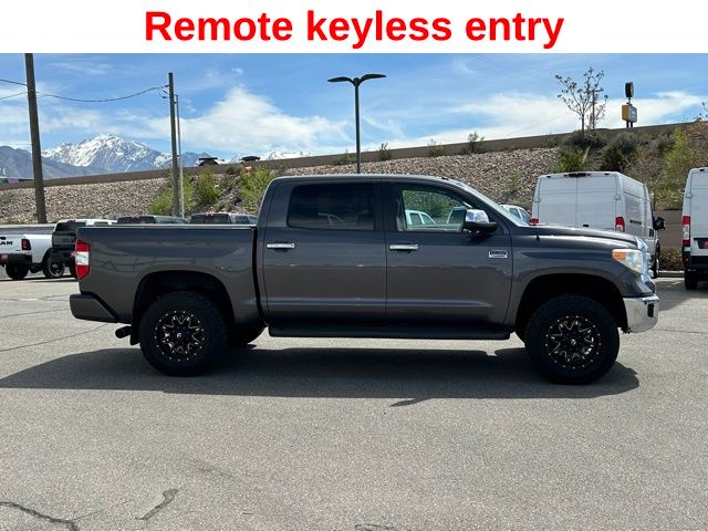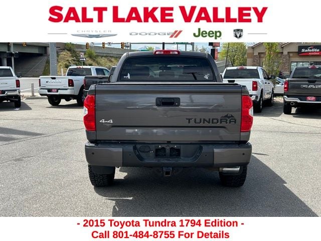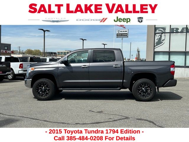 Get ready to hit the road in this Toyota Tundra, a standout choice for drivers looking for reliability, performance, and style! This impressive vehicle is packed with premium features designed to make every drive more enjoyable. Price excludes tax, title, license fee, government fees, and $449 dealer documentary service fee. While every reasonable effort is made to ensure accuracy, we are not responsible for errors or omissions, and vehicles may be sold prior to inquiryâ"please contact the dealer to confirm availability. All financing is subject to approved credit. Whether youâre searching for used cars in Salt Lake City, a dependable SUV, or a powerful truck, this Toyota Tundra delivers everything you need and more. Visit Salt Lake Valley Chrysler Dodge Jeep Ram today to test drive or explore our entire selection of quality pre-owned vehicles. Donât wait - shop online at www.slvcdjr.com or call 801-484-8755 to learn more! This amazing vehicle comes loaded with options like ABS brakes, Alloy wheels, Compass, Electronic Stability Control, Front dual zone A/C, Heated & Ventilated Front Bucket Seats, Heated door mirrors, Heated front seats, Illuminated entry, Leather Seat Trim, Low tire pressure warning, Navigation System, Power moonroof, Remote keyless entry, Traction control, 12 Speakers, 4-Wheel Disc Brakes, 4.30 Axle Ratio, Air Conditioning, AM/FM radio: SiriusXM, Auto-dimming door mirrors, Auto-dimming Rear-View mirror, Automatic temperature control, Brake assist, CD player, Driver door bin, Driver vanity mirror, Dual front impact airbags, Dual front side impact airbags, Exterior Parking Camera Rear, Front anti-roll bar, Front Bucket Seats, Front Center Armrest, Front fog lights, Front reading lights, Front wheel independent suspension, Garage door transmitter: HomeLink, Knee airbag, Leather steering wheel, Memory seat, Occupant sensing airbag, Outside temperature display, Overhead airbag, Overhead console, Panic alarm, Passenger door bin, Passenger vanity mirror, Power door mirrors, Power driver seat, Power passenger seat, Power steering, Power windows, Radio data system, Radio: Entune Premium w/JBL Audio & Navigation, Rear reading lights, Rear seat center armrest, Rear step bumper, Rear window defroster, Security system, Speed control, Speed-sensing steering, Split folding rear seat, Steering wheel memory, Steering wheel mounted audio controls, Tachometer, Telescoping steering wheel, Tilt steering wheel, Trip computer, Turn signal indicator mirrors, Variably intermittent wipers, Ventilated front seats, Voltmeter, and Wheels: 20" x 8J Split 6-Spoke Alloy Disc, making it the perfect choice for your next adventure.