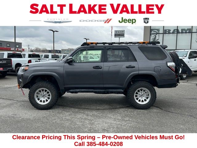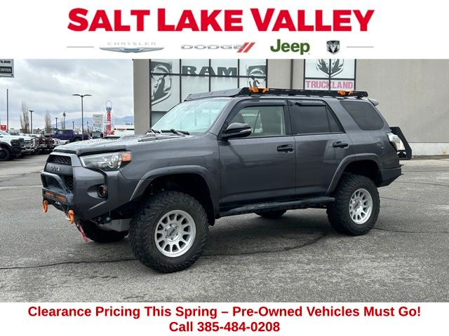 Get ready to hit the road in this Toyota 4Runner, a standout choice for drivers looking for reliability, performance, and style! This impressive vehicle is packed with premium features designed to make every drive more enjoyable. Price excludes tax, title, license fee, government fees, and $449 dealer documentary service fee. While every reasonable effort is made to ensure accuracy, we are not responsible for errors or omissions, and vehicles may be sold prior to inquiryâ"please contact the dealer to confirm availability. All financing is subject to approved credit. Whether youâre searching for used cars in Salt Lake City, a dependable SUV, or a powerful truck, this Toyota 4Runner delivers everything you need and more. Visit Salt Lake Valley Chrysler Dodge Jeep Ram today to test drive or explore our entire selection of quality pre-owned vehicles. Donât wait - shop online at www.slvcdjr.com or call 801-484-8755 to learn more! This amazing vehicle comes loaded with options like Carpet Floor Mats/Cargo Mat Package (TMS), Moonroof Package (Moonroof w/Tilt Up & Slide), Overland Option (Black Roof Rails, Body Color Heated Mirrors, Garage Door Opener, and Upgrade Speedometer), Venture Package (Venture All Weather Floor Liners, Venture Cargo Tray, Venture Crossbars, and Yakima Roof Cargo Basket), 3.727 Axle Ratio, 4-Wheel Disc Brakes, 8 Speakers, ABS brakes, Air Conditioning, Alloy wheels, AM/FM radio: SiriusXM, Anti-whiplash front head restraints, Apple CarPlay/Android Auto, Auto High-beam Headlights, Auto-dimming Rear-View mirror, Brake assist, Bumpers: body-color, Compass, Driver door bin, Driver vanity mirror, Dual front impact airbags, Dual front side impact airbags, Electronic Stability Control, Emergency communication system: Safety Connect with 1-year trial, Exterior Parking Camera Rear, Front anti-roll bar, Front Bucket Seats, Front Center Armrest, Front fog lights, Front reading lights, Front wheel independent suspension, Garage door transmitter: HomeLink, Heated door mirrors, Heated front seats, Illuminated entry, Knee airbag, Leather Shift Knob, Leather steering wheel, Low tire pressure warning, Navigation System, Occupant sensing airbag, Outside temperature display, Overhead airbag, Overhead console, Panic alarm, Passenger door bin, Passenger vanity mirror, Power door mirrors, Power driver seat, Power passenger seat, Power steering, Power windows, Radio: Premium Audio w/Dynamic Navigation, Rear anti-roll bar, Rear seat center armrest, Rear window defroster, Rear window wiper, Remote keyless entry, Roof rack, Security system, Softex Synthetic Leather Seat Trim, Speed control, Speed-sensing steering, Split folding rear seat, Spoiler, Steering wheel mounted audio controls, Tachometer, Telescoping steering wheel, Tilt steering wheel, Traction control, Trip computer, Turn signal indicator mirrors, Variably intermittent wipers, and Wheels: 17" Dark Gray Metallic Alloy, making it the perfect choice for your next adventure. Priced below KBB Fair Purchase Price!
