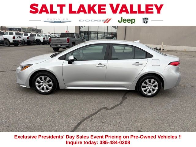 Get ready to hit the road in this Toyota Corolla, a standout choice for drivers looking for reliability, performance, and style! This impressive vehicle is packed with premium features designed to make every drive more enjoyable. Plus, youâll enjoy a $1,000 finance savings, already included in the sale price, when you finance through one of our trusted lending partners. Whether youâre searching for used cars in Salt Lake City, a dependable SUV, or a powerful truck, this Toyota Corolla delivers everything you need and more. Visit Salt Lake Valley Chrysler Dodge Jeep Ram today to test drive or explore our entire selection of quality pre-owned vehicles. Donât wait - shop online at www.slvcdjr.com or call 801-484-8755 to learn more! This amazing vehicle comes loaded with options like 16" Steel Wheels w/Covers, 4-Wheel Disc Brakes, 6 Speakers, ABS brakes, Air Conditioning, AM/FM radio: SiriusXM, Auto High-beam Headlights, Automatic temperature control, Brake assist, Bumpers: body-color, Delay-off headlights, Driver door bin, Driver vanity mirror, Dual front impact airbags, Dual front side impact airbags, Electronic Stability Control, Emergency communication system: Safety Connect (up to 10-year trial subscription), Exterior Parking Camera Rear, Fabric Seat Trim, Front anti-roll bar, Front Bucket Seats, Front Center Armrest, Front reading lights, Front wheel independent suspension, Fully automatic headlights, Illuminated entry, Knee airbag, Low tire pressure warning, Occupant sensing airbag, Outside temperature display, Overhead airbag, Panic alarm, Passenger door bin, Passenger vanity mirror, Power door mirrors, Power steering, Power windows, Radio data system, Radio: 8" Toyota Audio Multimedia, Rear anti-roll bar, Rear seat center armrest, Rear side impact airbag, Rear window defroster, Remote keyless entry, Speed control, Split folding rear seat, Steering wheel mounted audio controls, Tachometer, Telescoping steering wheel, Tilt steering wheel, Traction control, and Trip computer, making it the perfect choice for your next adventure. Priced below KBB Fair Purchase Price!