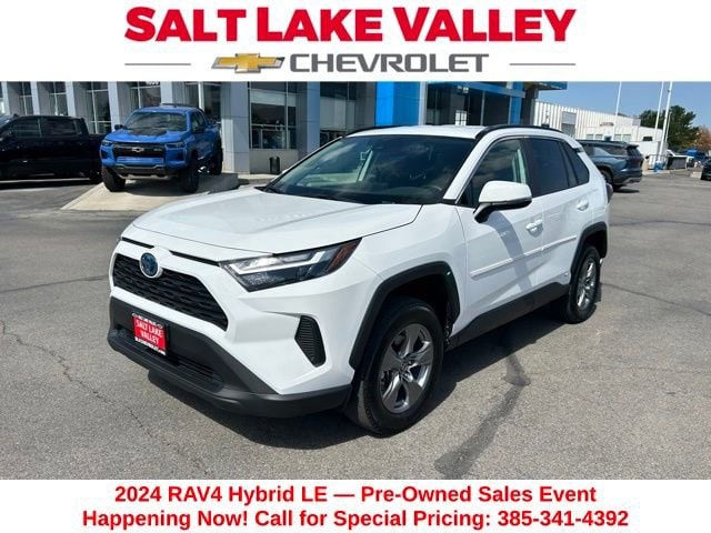 This Toyota RAV4 Hybrid is packed with all your favorite features and includes a $1,000 finance savings, already included into the sale price, when you finance through one of our trusted lending partners! Explore more quality vehicles at www.slvchevrolet.com or call 801-969-8221 today! Enjoy the great options on this RAV4 Hybrid like 4-Wheel Disc Brakes, 6 Speakers, ABS brakes, Air Conditioning, Alloy wheels, AM/FM radio: SiriusXM, Auto High-beam Headlights, Automatic temperature control, Axle Ratio: TBD, Brake assist, Bumpers: body-color, Driver door bin, Driver vanity mirror, Dual front impact airbags, Dual front side impact airbags, Electronic Stability Control, Emergency communication system: Safety Connect (1-year trial), Exterior Parking Camera Rear, Fabric Seat Trim, Four wheel independent suspension, Front anti-roll bar, Front Bucket Seats, Front Center Armrest, Front dual zone A/C, Front reading lights, Illuminated entry, Knee airbag, Low tire pressure warning, Occupant sensing airbag, Outside temperature display, Overhead airbag, Overhead console, Panic alarm, Passenger door bin, Passenger vanity mirror, Power door mirrors, Power steering, Power windows, Radio data system, Radio: AM/FM/XM Audio System, Rear anti-roll bar, Rear seat center armrest, Rear window defroster, Rear window wiper, Remote keyless entry, Speed control, Speed-sensing steering, Split folding rear seat, Spoiler, Steering wheel mounted audio controls, Telescoping steering wheel, Tilt steering wheel, Traction control, Trip computer, and Wheels: 17 x 7.0J Silver Aluminum Alloy.