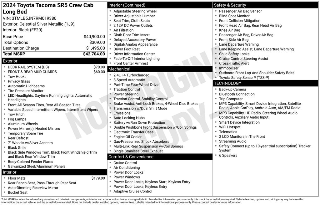 I bought a 2024 Tacoma (SR5) to replace my 2018 Tacoma. The 2024 model far exceeded expectations. Well built, and it handles extremely well. It is a fun vehicle to drive with a lot of safety and useful features. In particular, Apple Car Play is a winner!