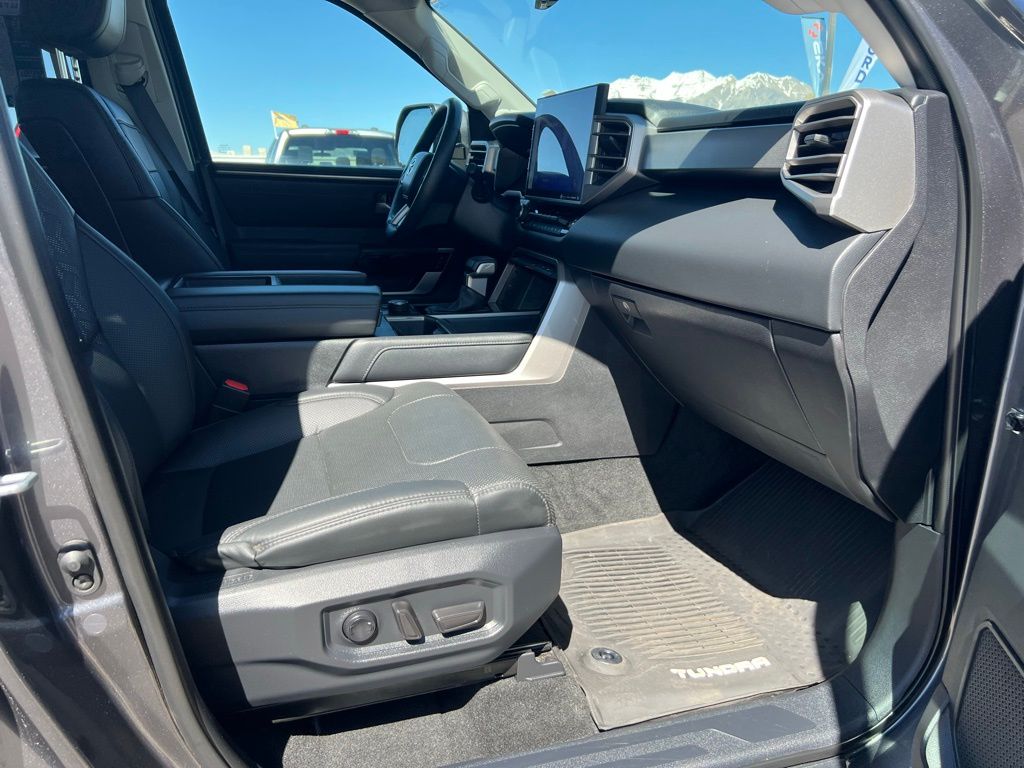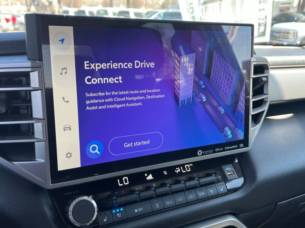 The interior of this Tundra Limited is equally impressive, featuring premium SofTex seating, a heated and ventilated driver's seat, and a heated steering wheel for maximum comfort. The 14-inch touchscreen display with JBL premium audio system and connected services keeps you entertained and informed on the go.